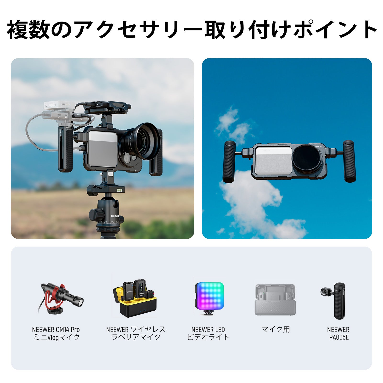 様々なアタッチメントを備えた機能的なスマホケージ&リグとなり、スマホで本格的な動画撮影をしたいならNEEWERは間違いなくお勧めです!