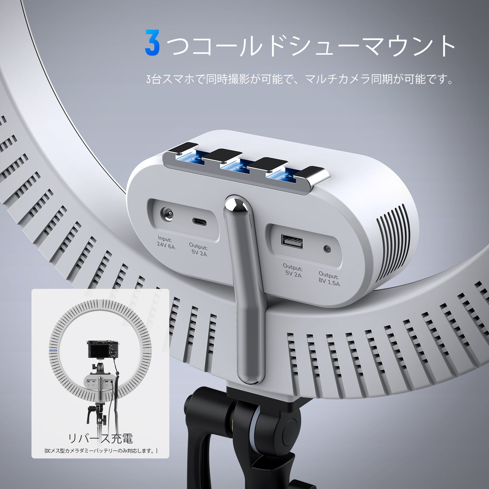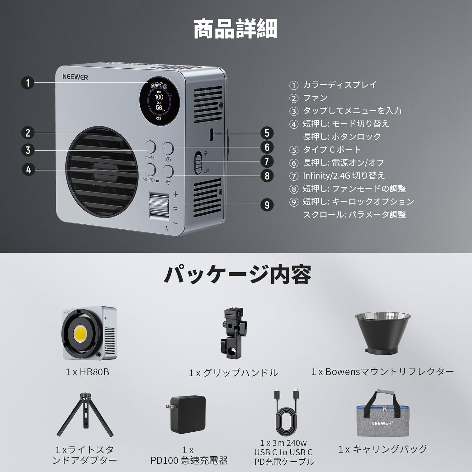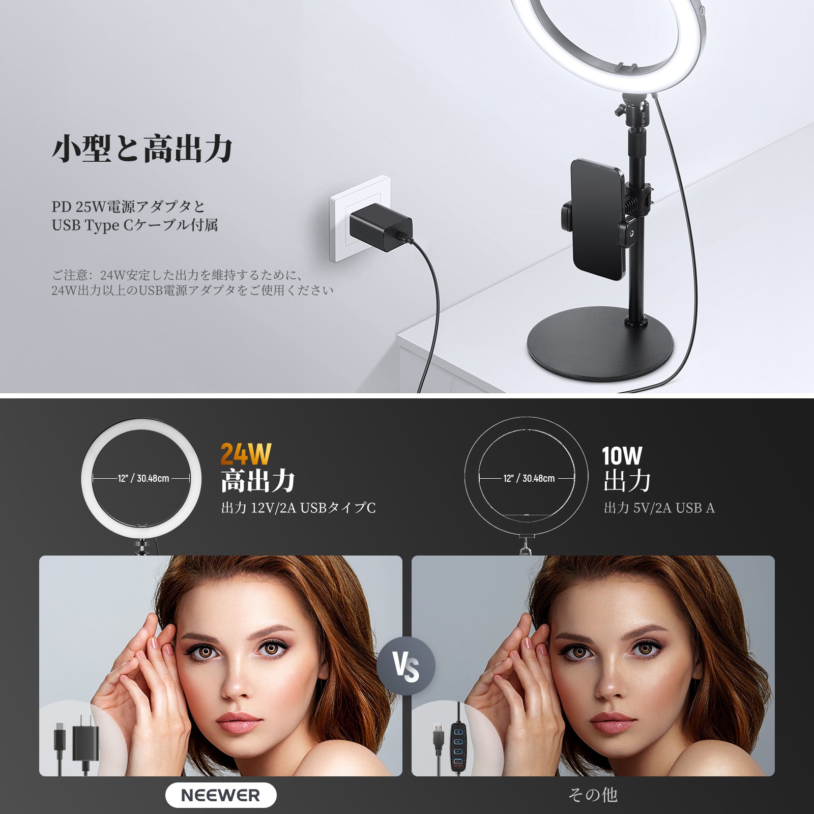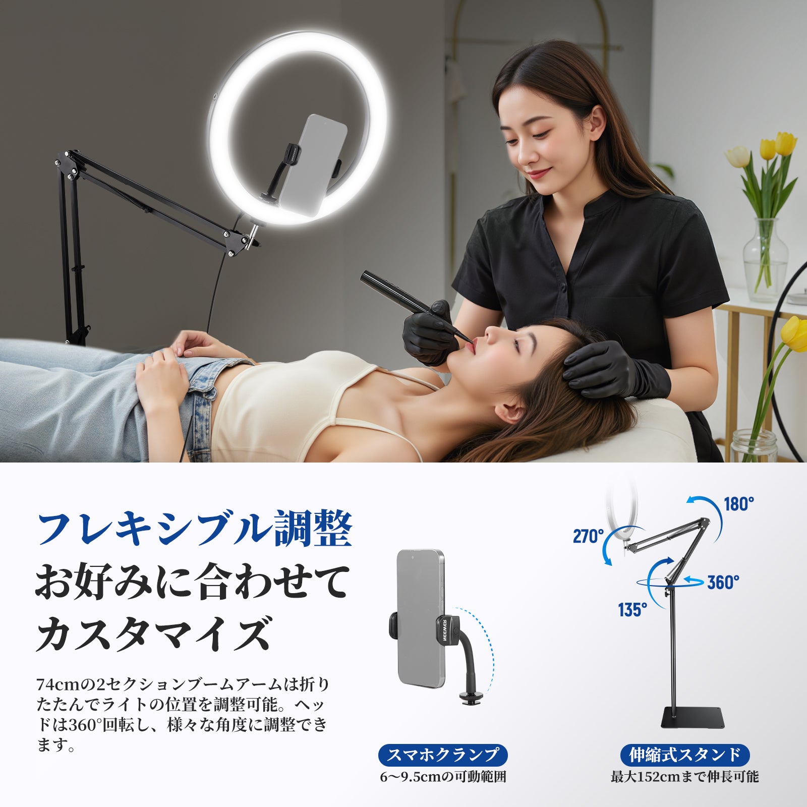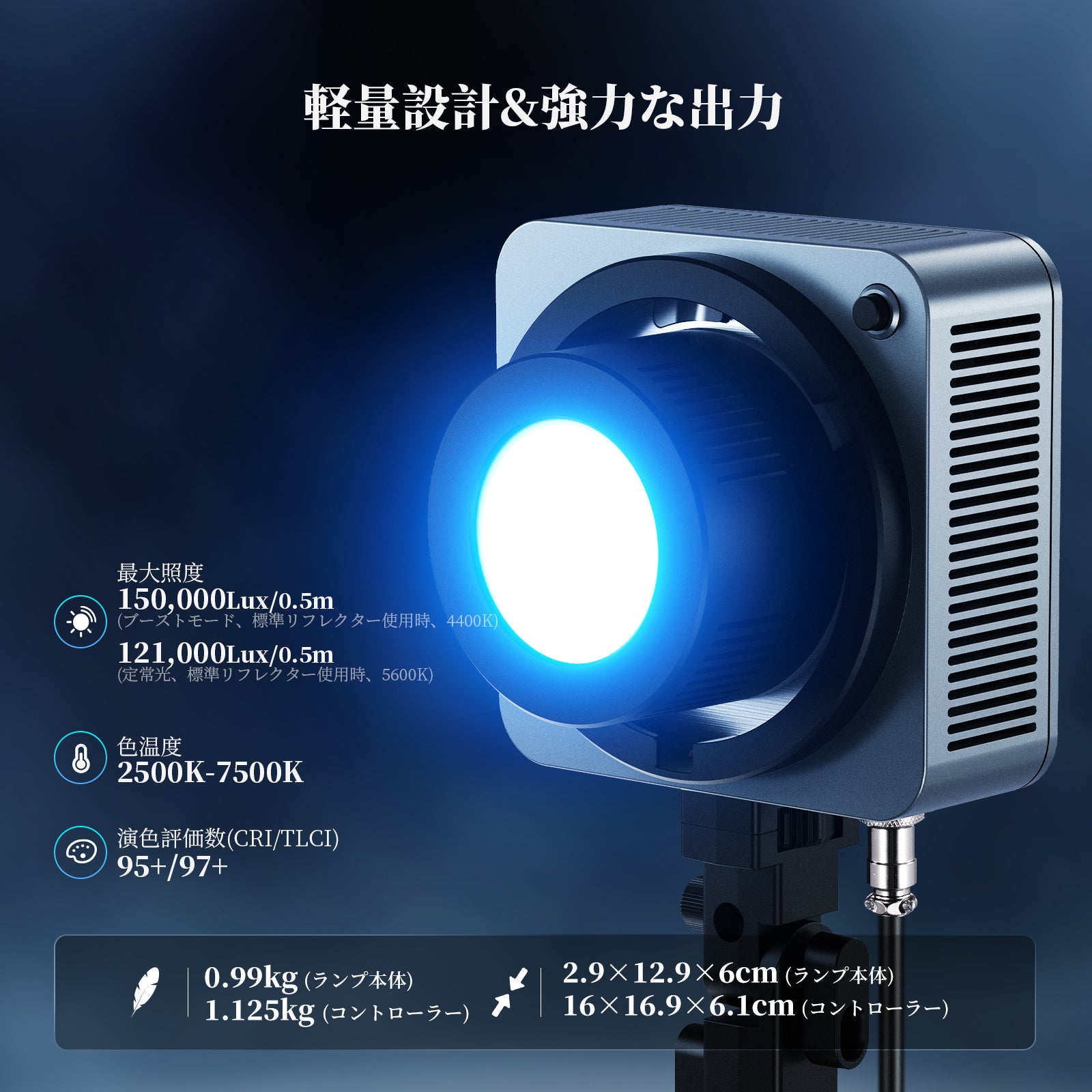 3200K~5600Kの色温度、0~100%の調光範囲、97+の高いCRI、21Wの電力、105個の暖色LED、および105個の冷色 LED を備えています。YouTubeのビデオ録画、ビデオブログ、ゲーム、ライブストリーミング、ポートレート、製品の写真撮影に最適です。