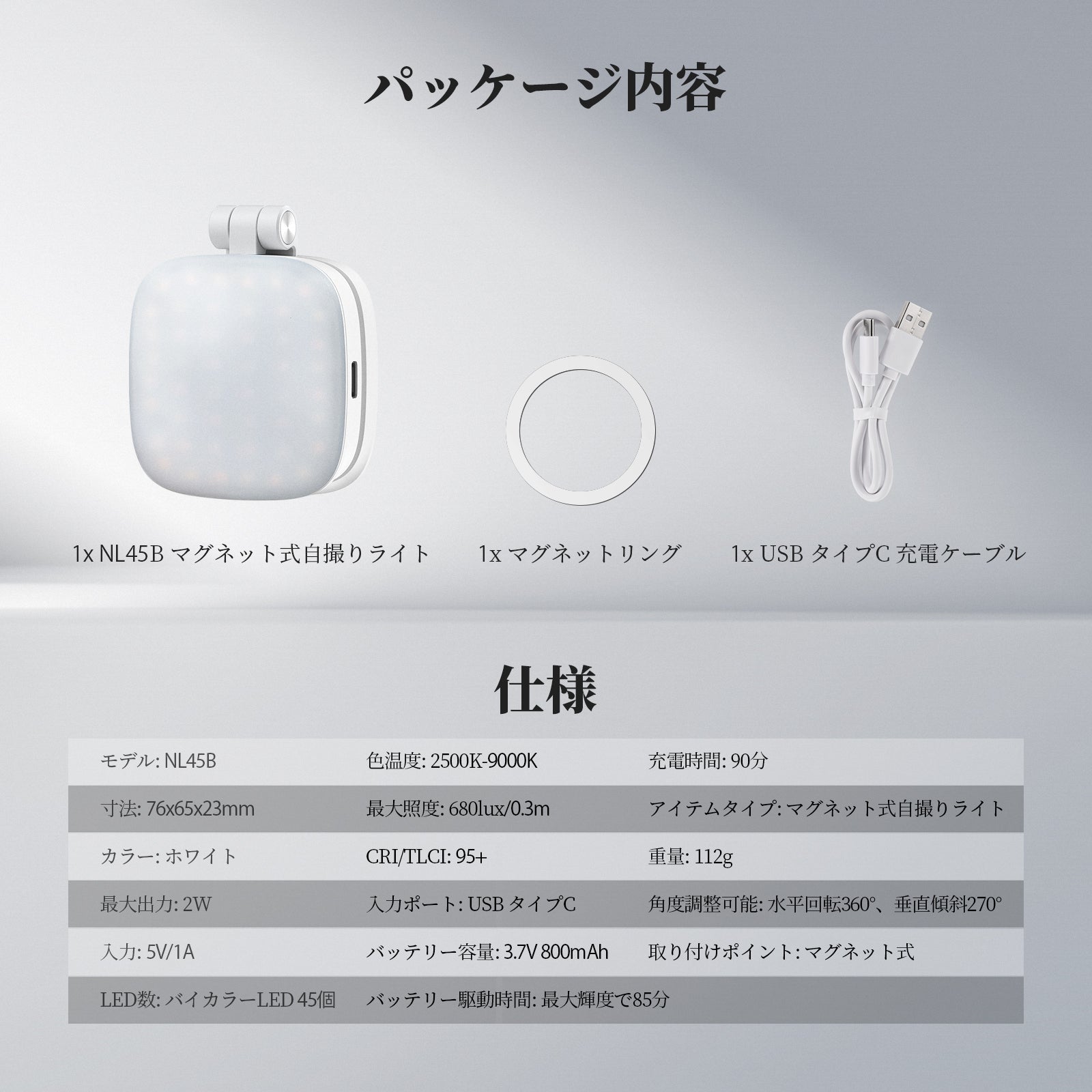 1x NL45Bマグネット式自撮りライト