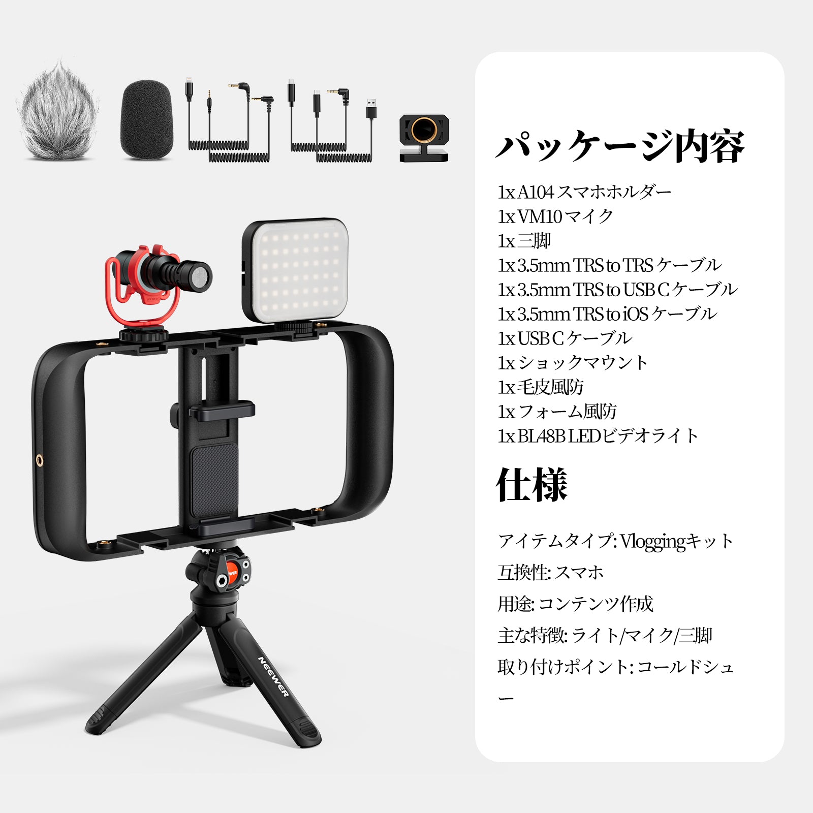 - 【小型プラグプレイマイク】VM10ミニポータブルマイクをデバイスに直接接続するだけで、プロなサウンドを録音でき、バッテリーは不要です。スーパーカーディオイド指向特性を備え、50-100cm範囲でクリアな音声を収音します。OTGケーブルと3.5mm TRSケーブルを付属し、iPhone、iPad、Android、カメラに対応しており、vlog、動画撮影、生放送、ポッドキャストなどにご利用いただけます。ショックマウントとウィンドスクリーンは、不要なノイズを低減します。