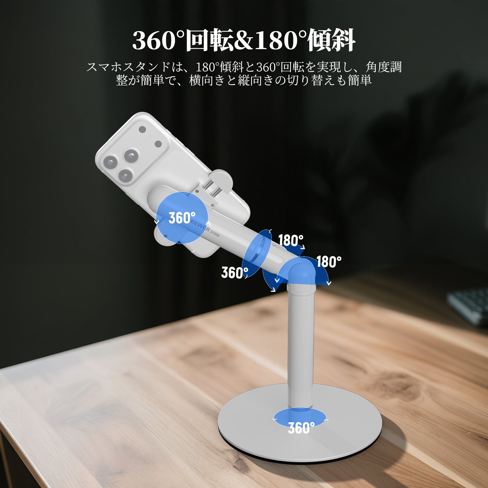 - 【調整可能なスマホスタンド】卓上スマホスタンドホルダーは、人間工学に基づき、85mm高さ調整可能で、長時間のモバイル使用でも快適な視野角を提供します。読書、動画視聴、自撮り、生放送、ホームオフィスのビデオコール、パソコンでのズーム会議、ゲームなどに最適です。ベースは重みのある金属で作られ、スマホ角度調整時の安定性を保証します。コンテンツクリエイターや在宅勤務者、インフルエンサーにとって必要なアイテムとして最適です。