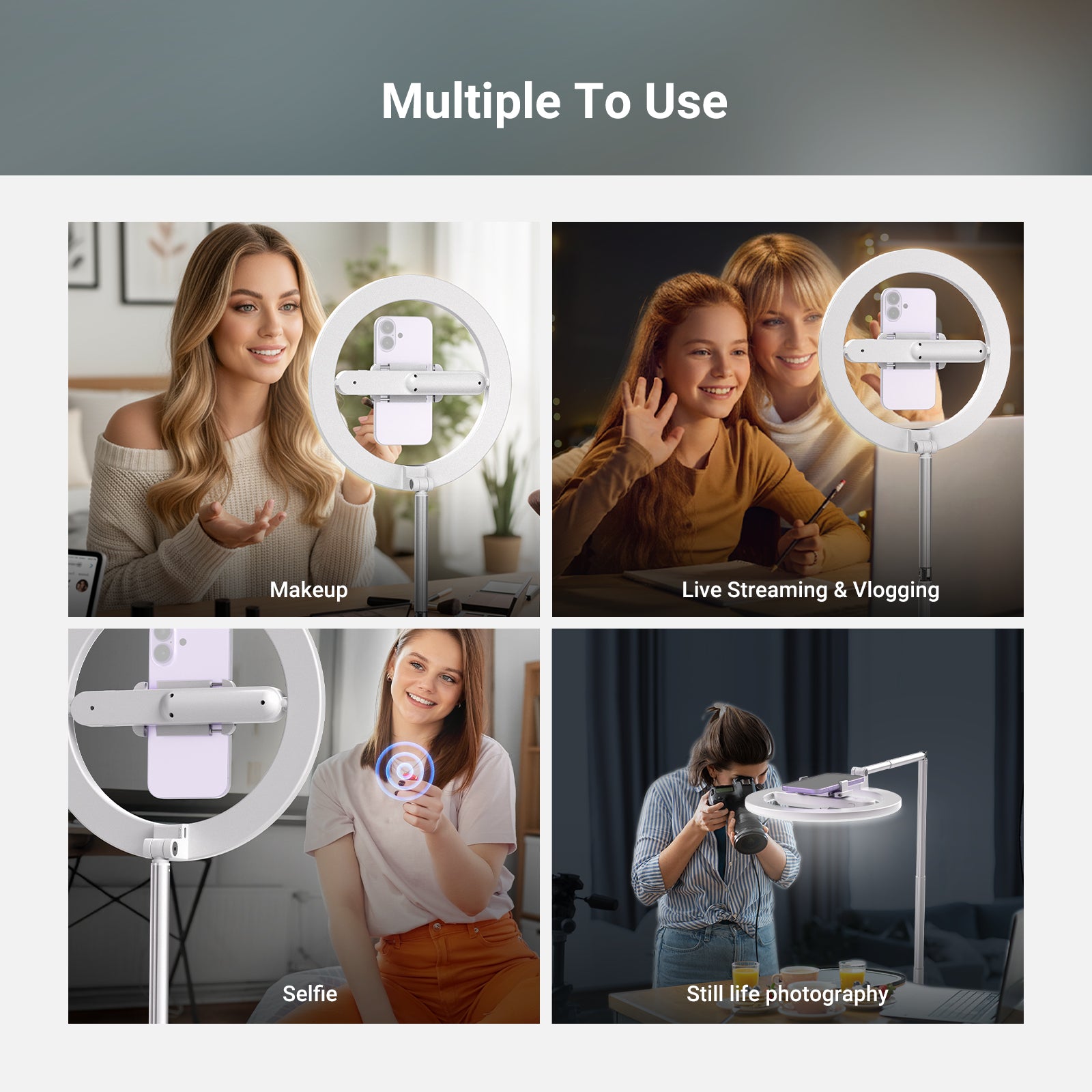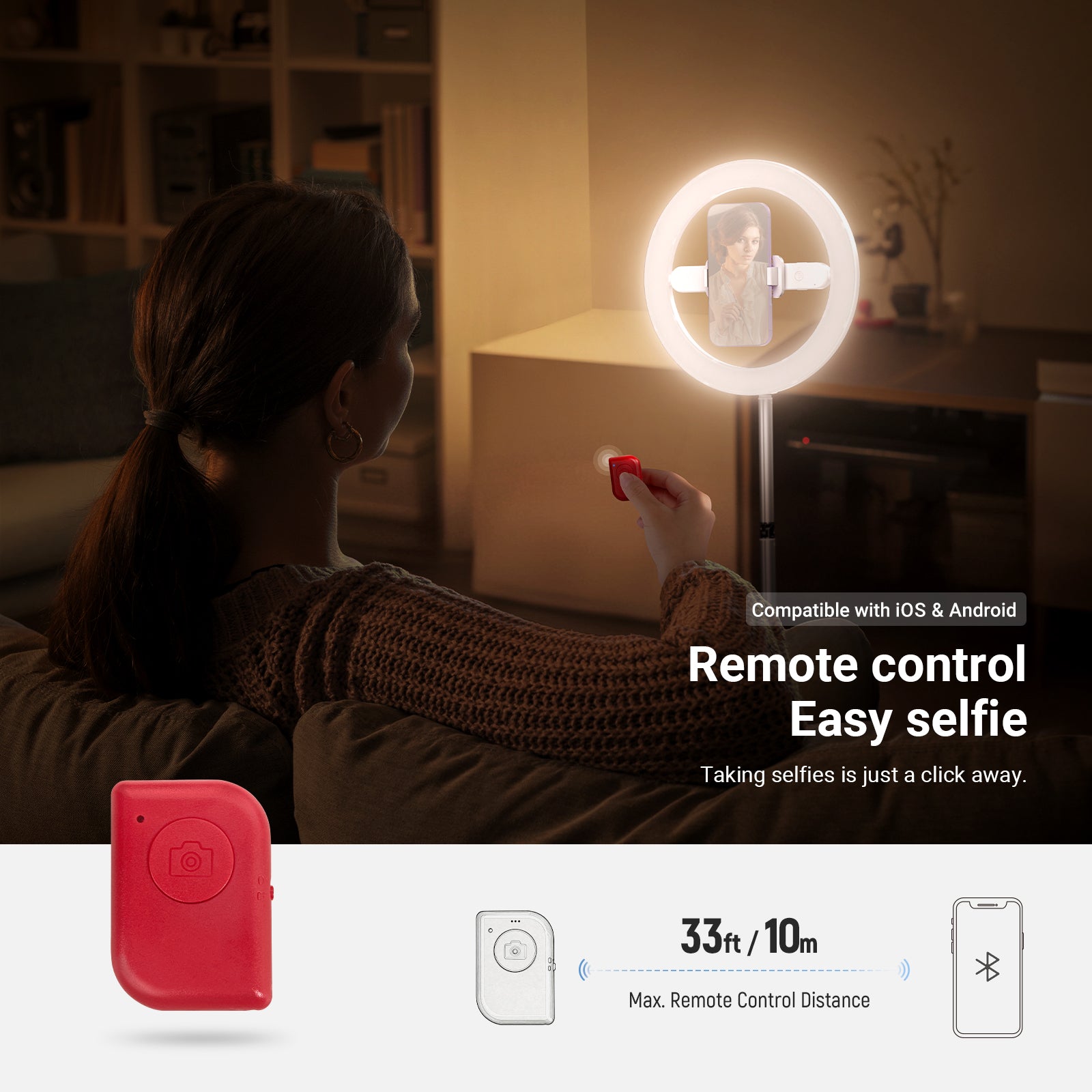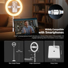 【スマホ撮影に最適】自撮りリングライトは360°回転可能なユニバーサルスマホホルダーを備え、縦向きモードと横向きモードの両方で最適な画質を実現する均一で柔らかな拡散光を提供。デスククリップ式スタンドで卓上での俯瞰撮影やVlog制作に最適。iPhone 16/15 Pro Max Plusをはじめ、各種Androidスマートフォンにも対応。ワイヤレスシャッター操作用Bluetoothリモコンと配線整理に便利なケーブルクリップ2個が付属。ご使用中何かご質問がございましたら、お気軽に弊社のカスタマーサポートまでお問い合わせください。