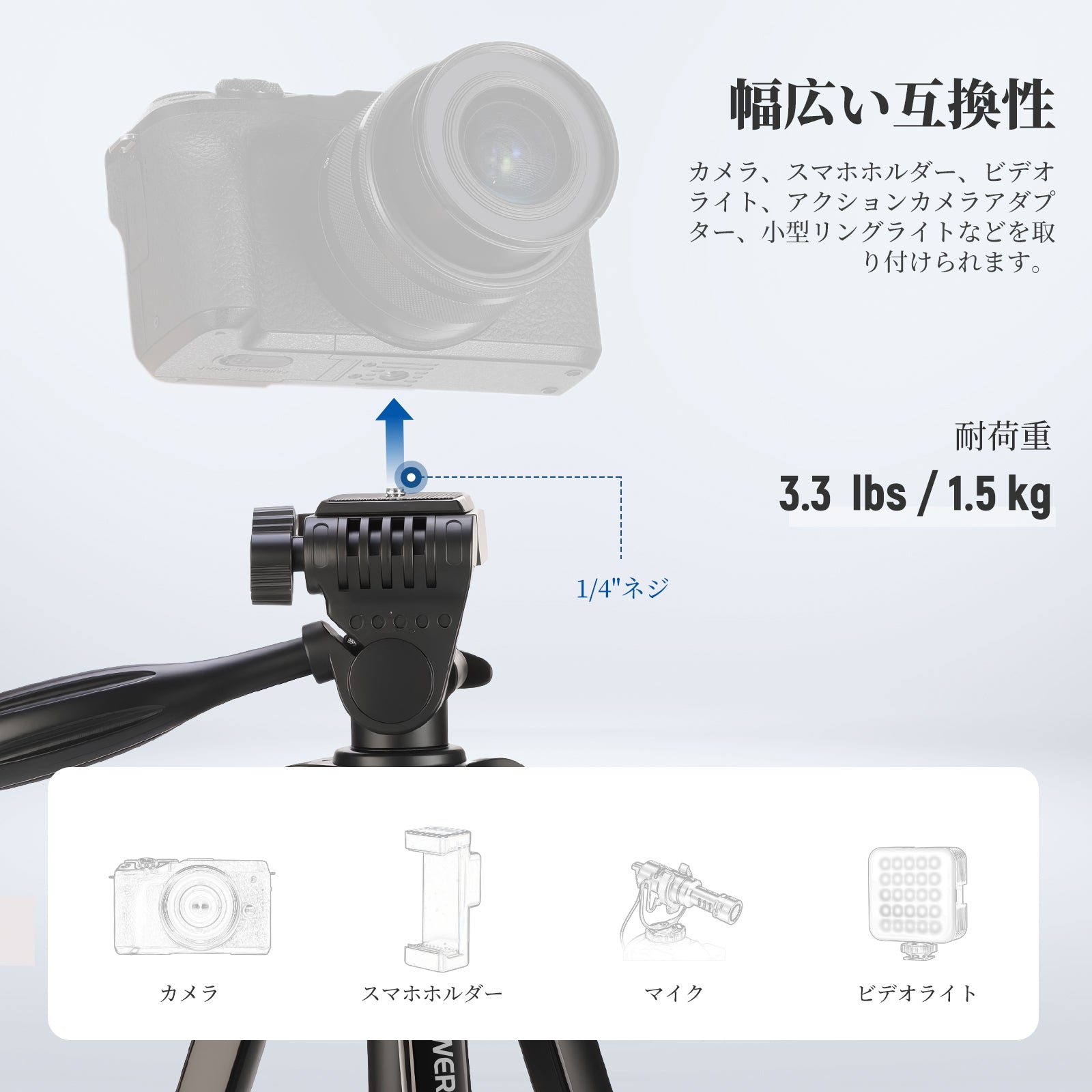 - 【金属製トラベル三脚】軽量三脚は頑丈なアルミ合金製で、スマホホルダーアタッチメント付き、DSLRカメラ、アクションカメラ(アダプターは付属していません)に対応します、または最大1.5kgスマホを安全にマウントし、自撮り、vlog作成、生放送、映画制作などに使用できます。 重さ568gのポータブル三脚は、43cmに折りたたむことができ、付属のキャリーバッグで外出先での写真撮影も可能です。ミッドスプレッダーは即座のセットアップに役立ち、安定性を保証します。