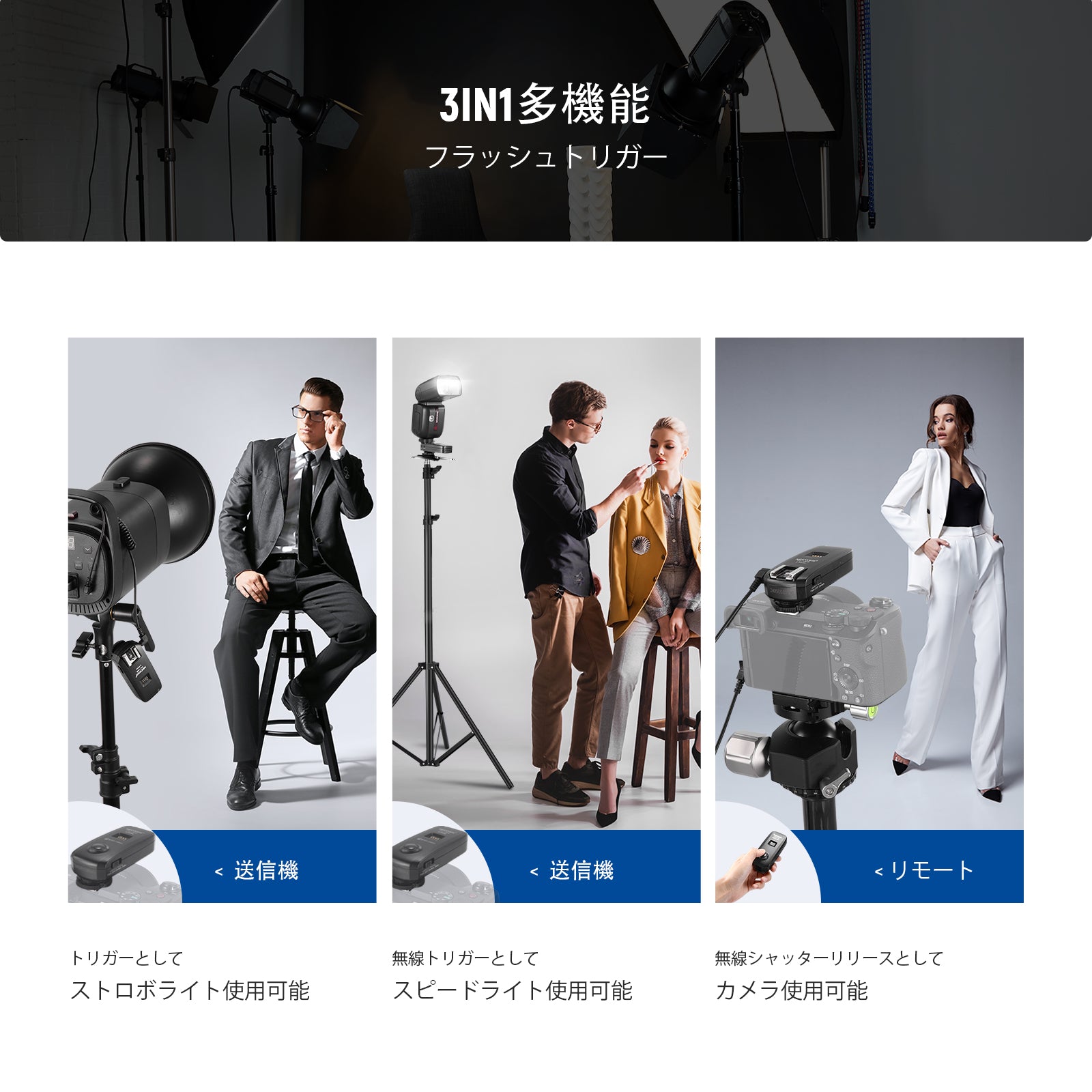 - 【3in1多機能フラッシュトランスミッター】リモートフラッシュトリガートランスミッターは、(1)NEEWER S101-300W S101-400W S101-400W PRO Q300フラッシュなどの無線シンクロトリガースタジオストロボフラッシュとして使用できます。(2)無線トリガースピードライトフラッシュとして使用できます。(3)無線カメラシャッターリリースとしても使用可能です。