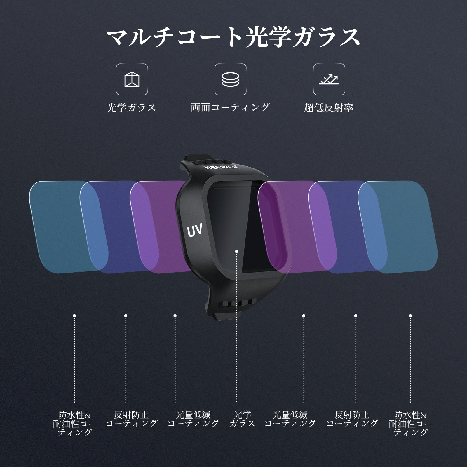 - 【マルチコート光学ガラス】多層両面コーティングを施した光学ガラスは、水、指紋、傷に強く、鮮明な映像を実現します。日常のお手入れに便利なクリーニングクロスが付属しています。