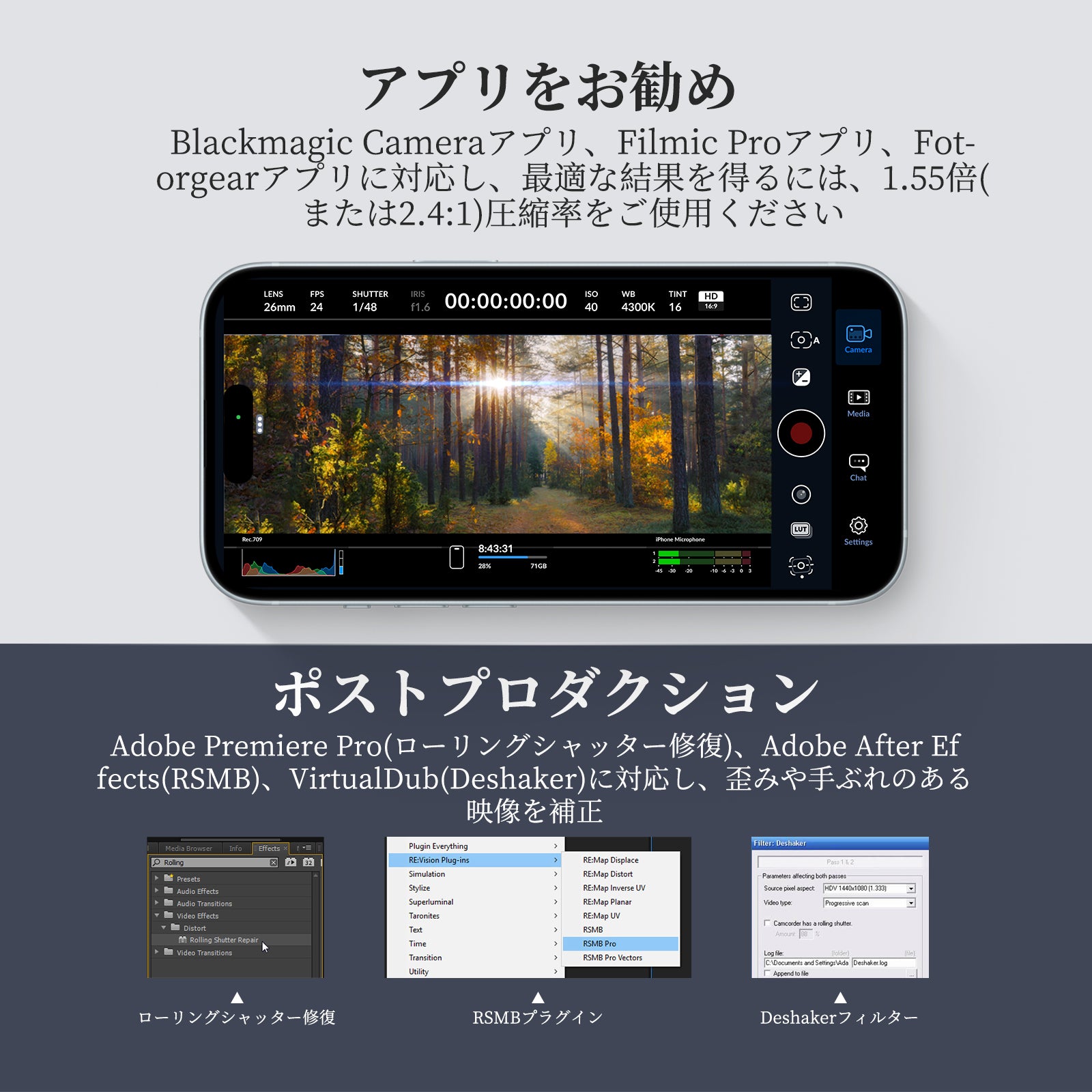- 【ローリングシャッター&ジェロ効果の回避方法】1. 三脚、ジンバル、スタビライザー、より高速なシャッタースピードを使用してください。2. 画像編集には、Adobe Premiere Proローリングシャッターと互換性があります。 RSMBプラグイン、Deshakerフィルターをご使用ください。ご注意: 重量のあるレンズや長いレンズをご使用の場合は、安定性を高めるため、NEEWERスマホケースとスマホケージをご使用ください。