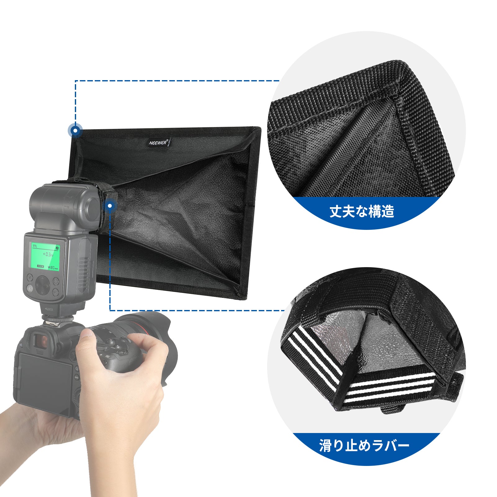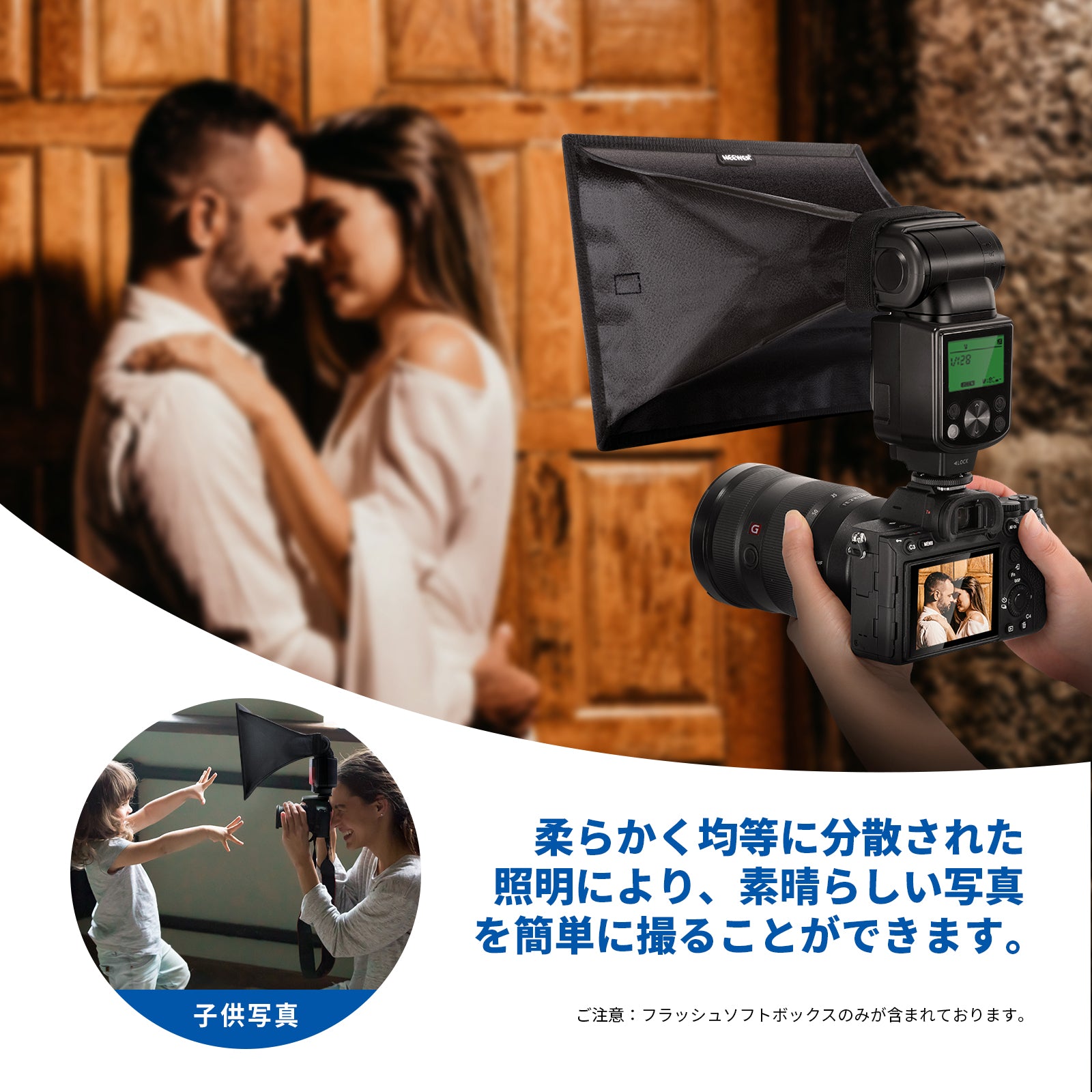 【均一照明】このスピードライトソフトボックスは、フラッシュを拡散させることで均一な照明を作り出し、完璧なショットを撮影できます。