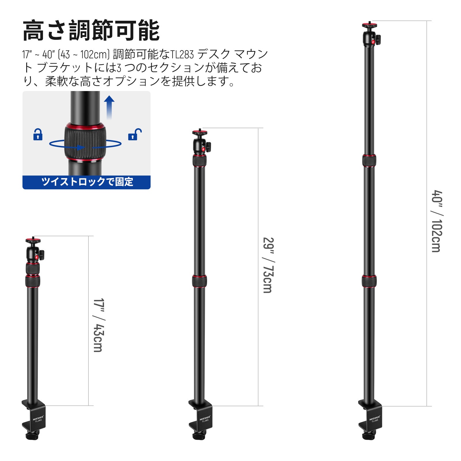 【幅広い用途】デジタル一眼レフカメラ、ミラーレスカメラ、ウェブカメラ、リングライト、LEDビデオライトを取り付けて、製品写真、マクロ写真、オーバーヘッド写真、ビデオ会議、ライブストリーミング、オンライン教育、ブログを作成できます。680gの正味重量で持ち運びが簡単です。