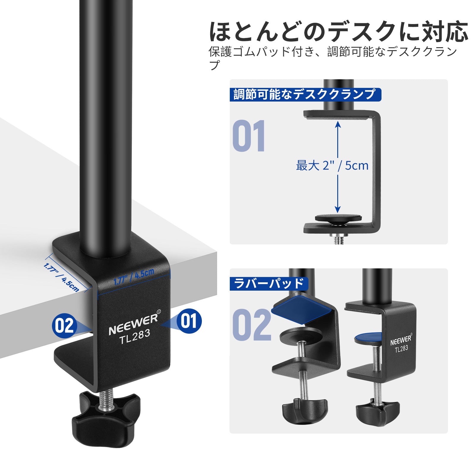 【調整可能なデスクCクランプ】デスクマウント C クランプは厚さ2 5cmまでのデスクに適します。デスク/テーブルをきれいに整頓しながらスタンドをサポートする省スペース工具です。ゴムパッドは木製の表面の傷も防ぎます。