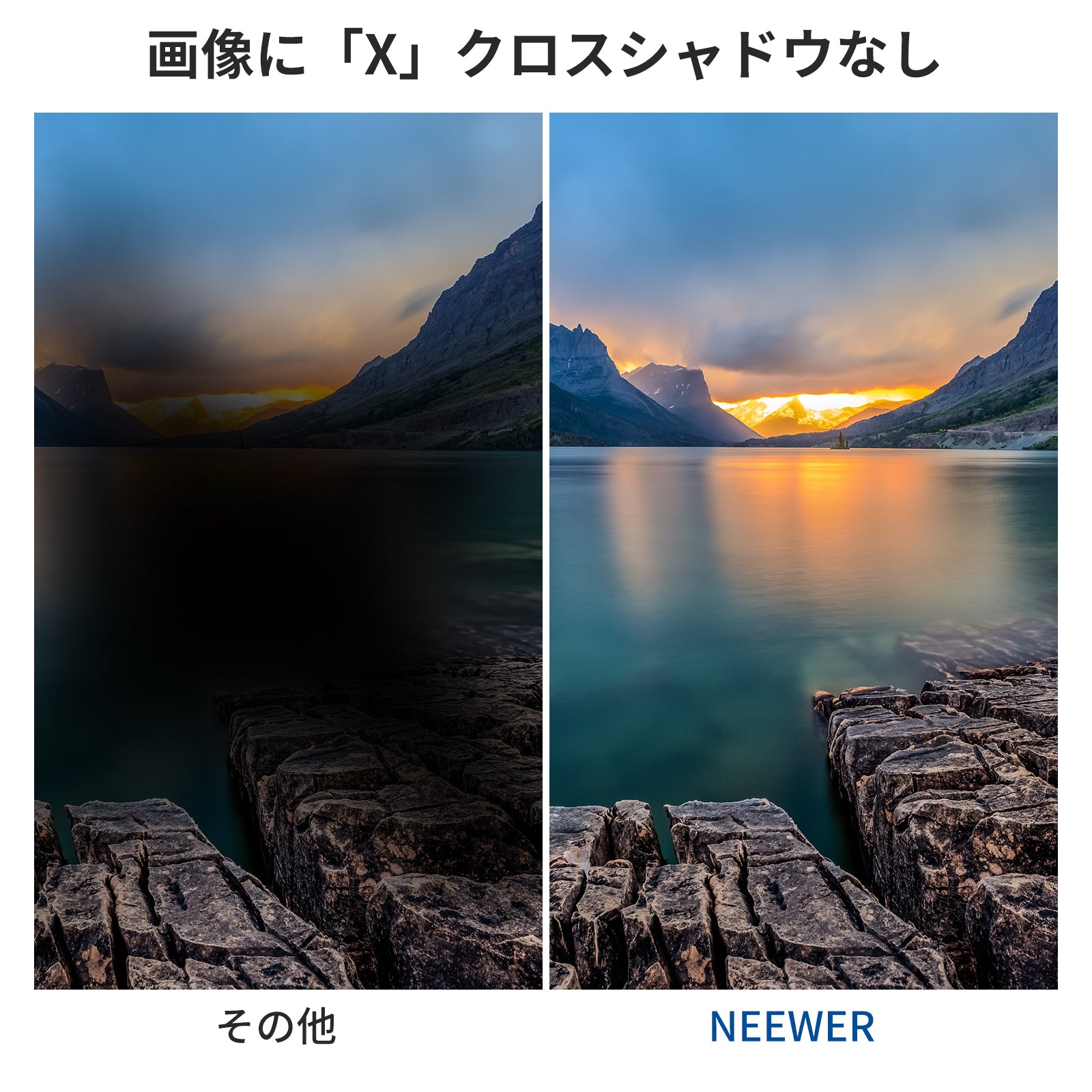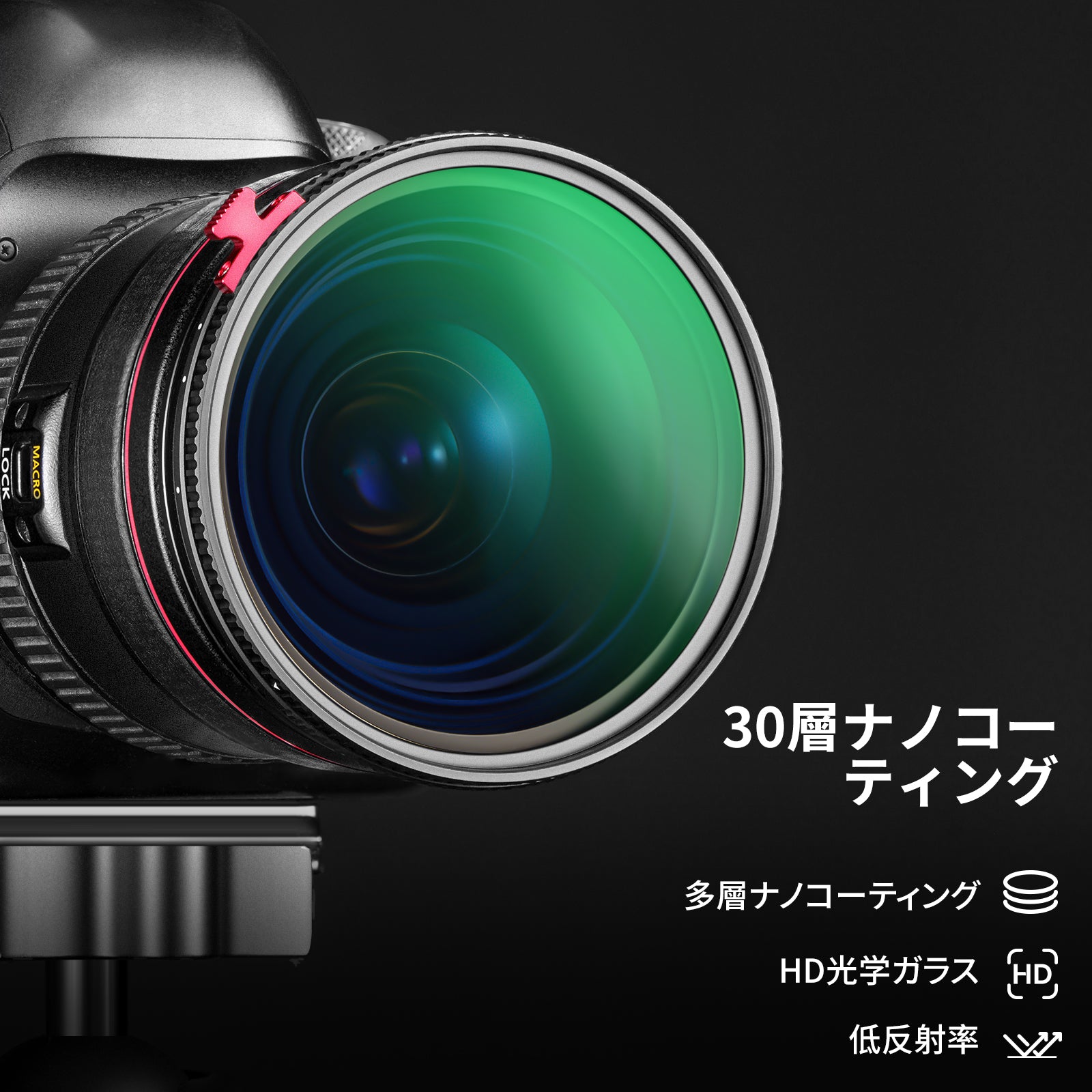 【マルチナノコーティングで色ずれなし】2in1可変ND2-ND32&1/4ブラック拡散フィルターは、X クロスシャドウをキャストすることなくシャープな画像を提供しながら、スリムで軽量です。フィルターの両面に30層のナノコーティングを施すことで、撥水性、耐傷性、耐油性、耐指紋性に優れています。