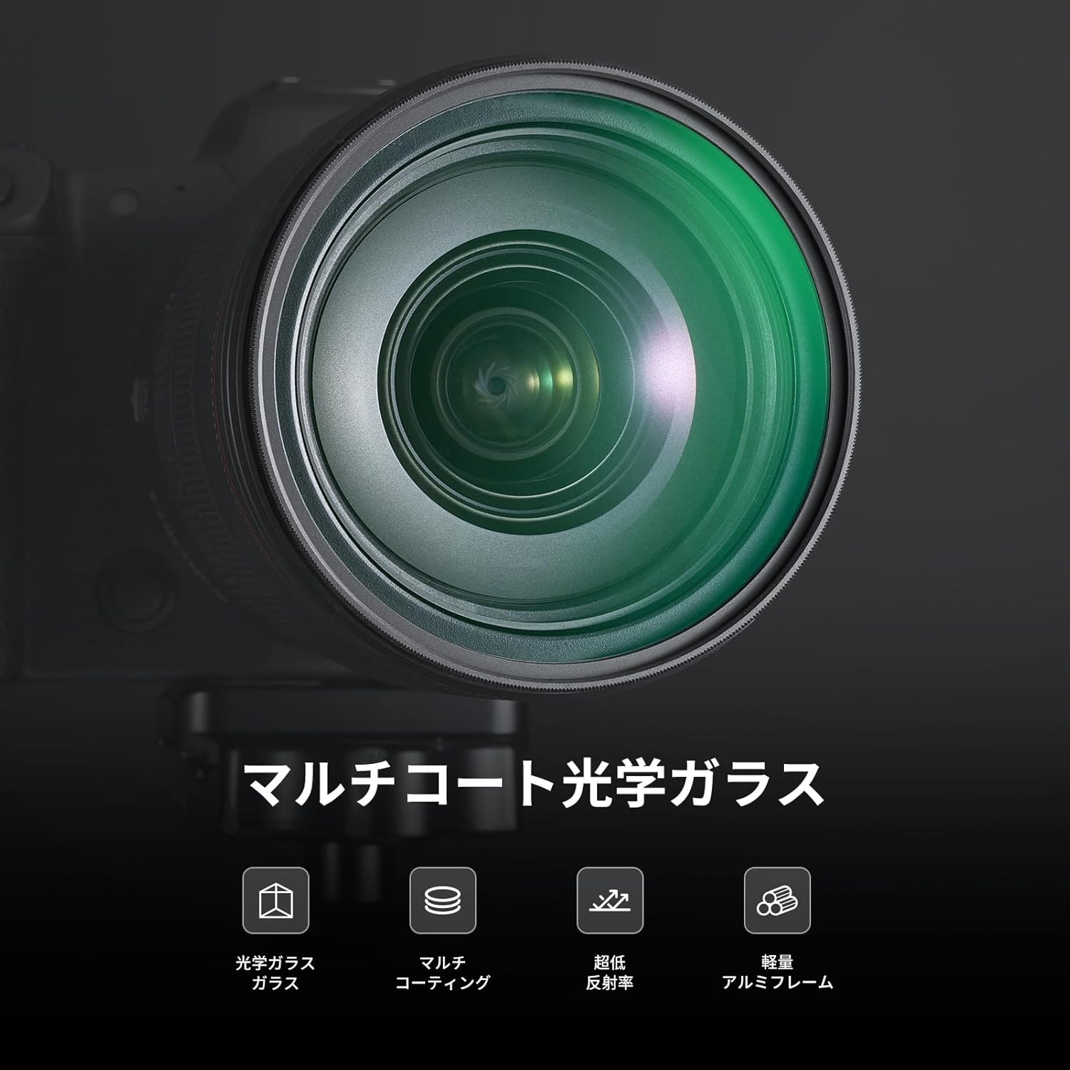 - 【30層ナノメートルコート】フィルター両面に施された30層ナノメートルコート は、あらゆる方向からの反射とフィルター自体の反射を抑え、水、油、傷、指紋に強いです。