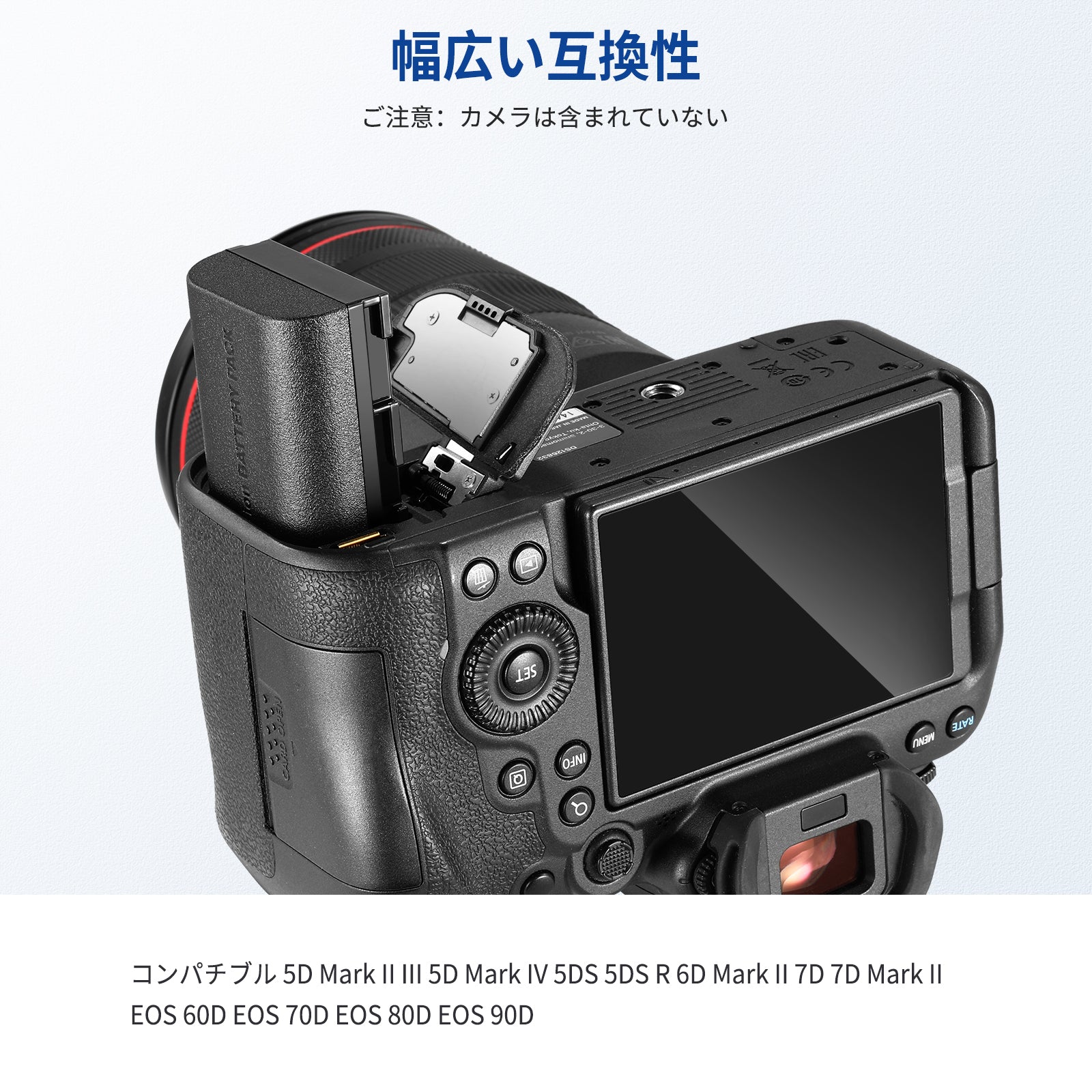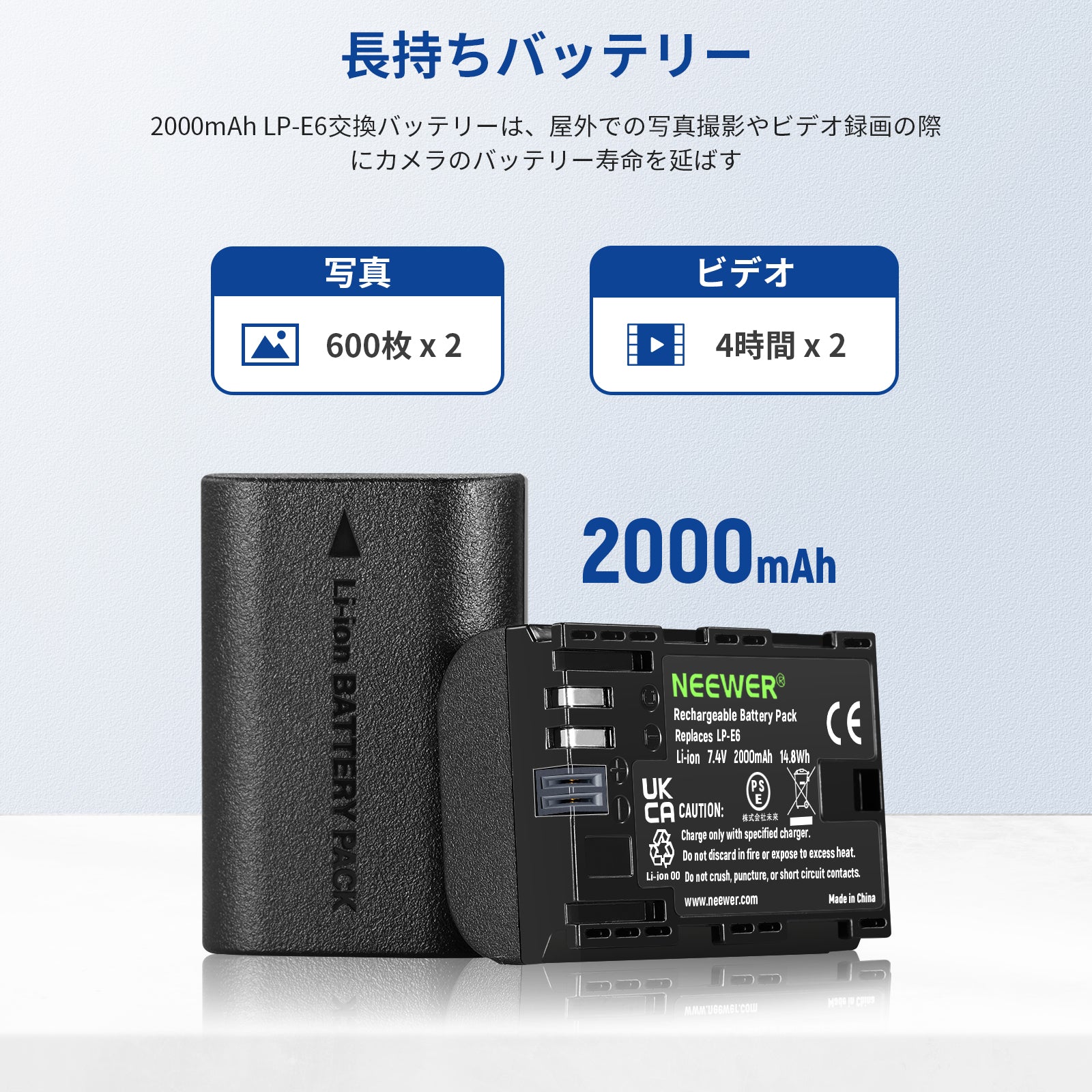 【十分なバッテリーパワー】2個の2280mAhのLP-E6/E6N充電式交換バッテリーは、屋外での創作活動を行う写真家、ビデオブロガー、映画制作者に十分なバッテリーを提供し、見逃せない貴重な瞬間を捉えるのに役立ちます。