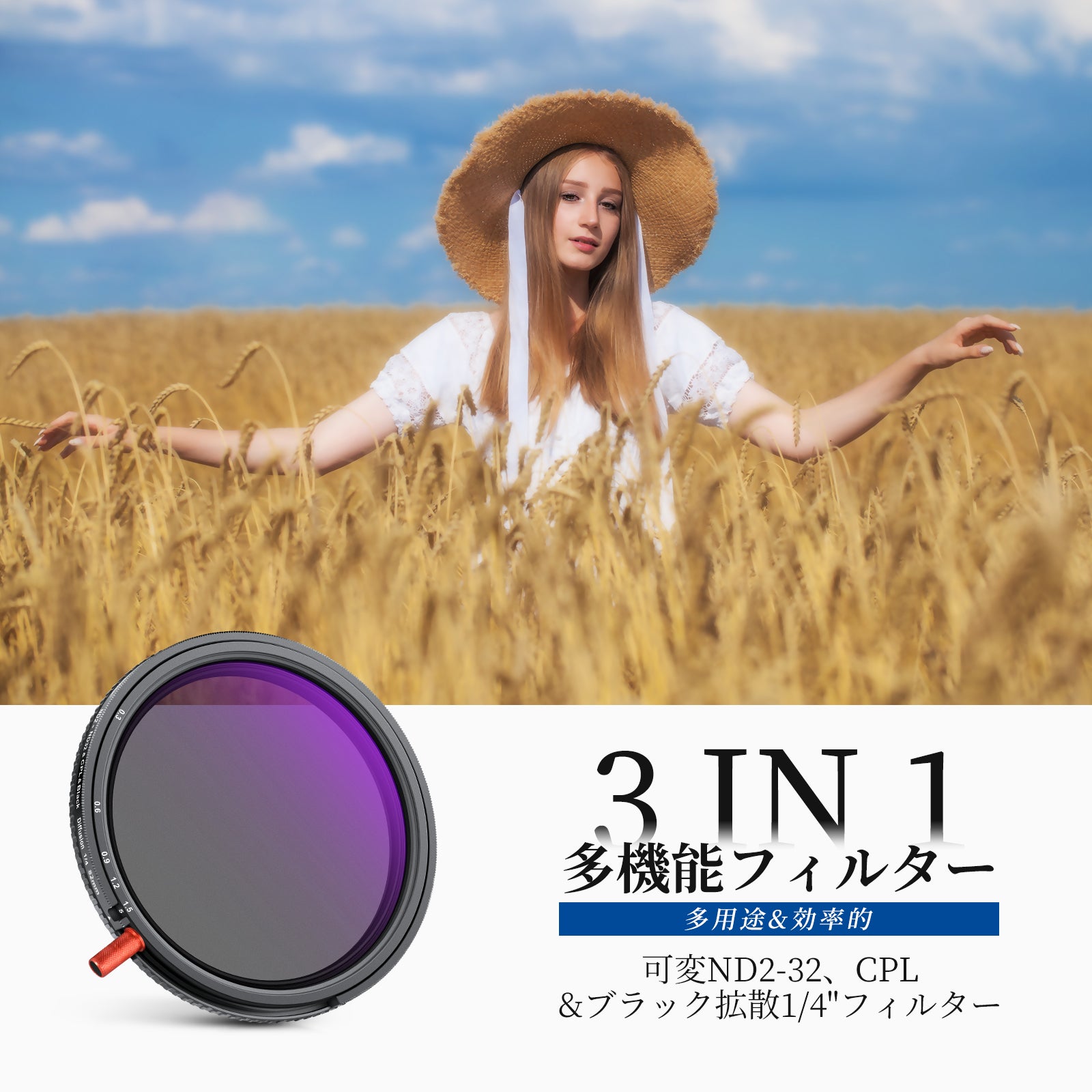 NEEWER 3in1 CPL+ブラック拡散 1/4 + 可変 ND2-32 フィルター