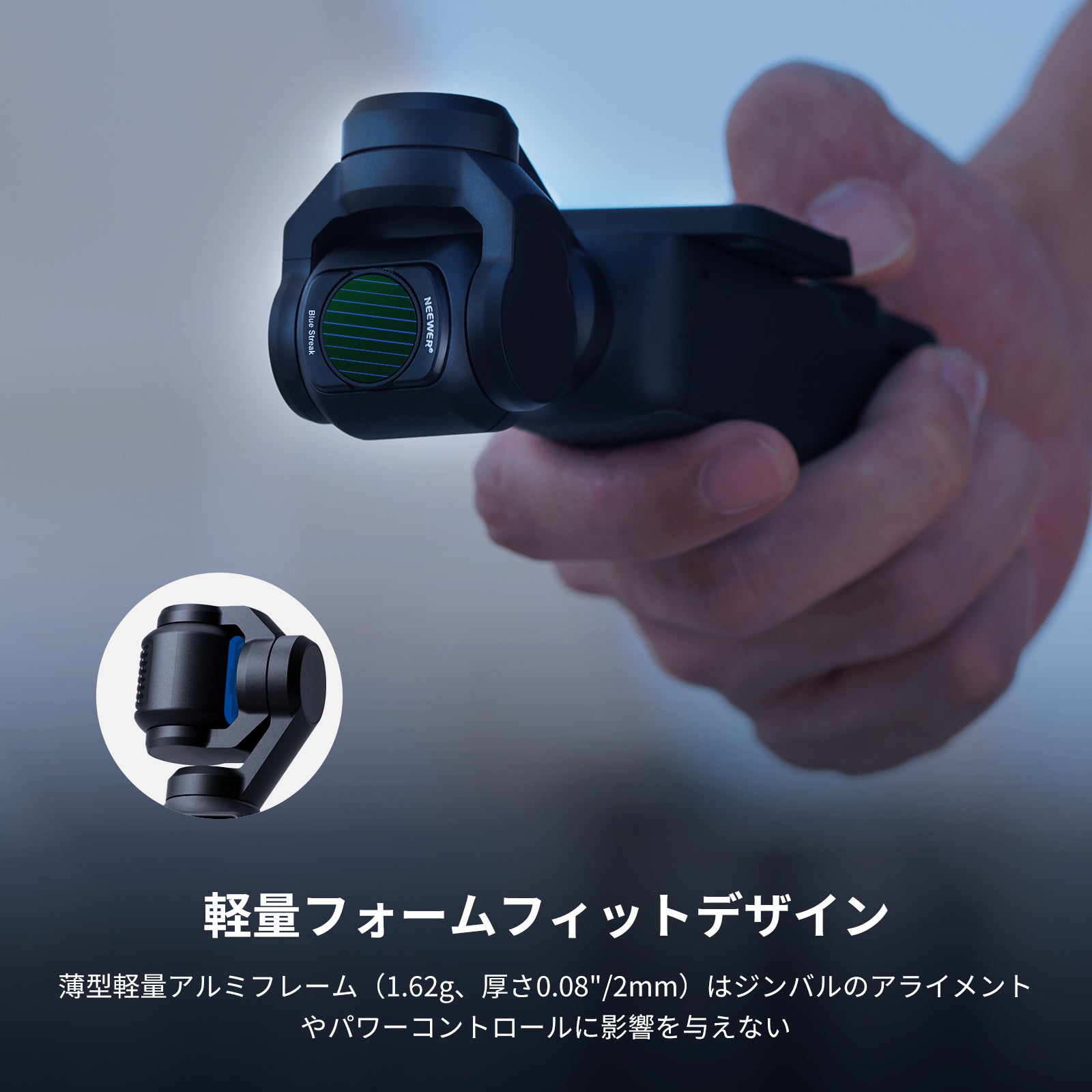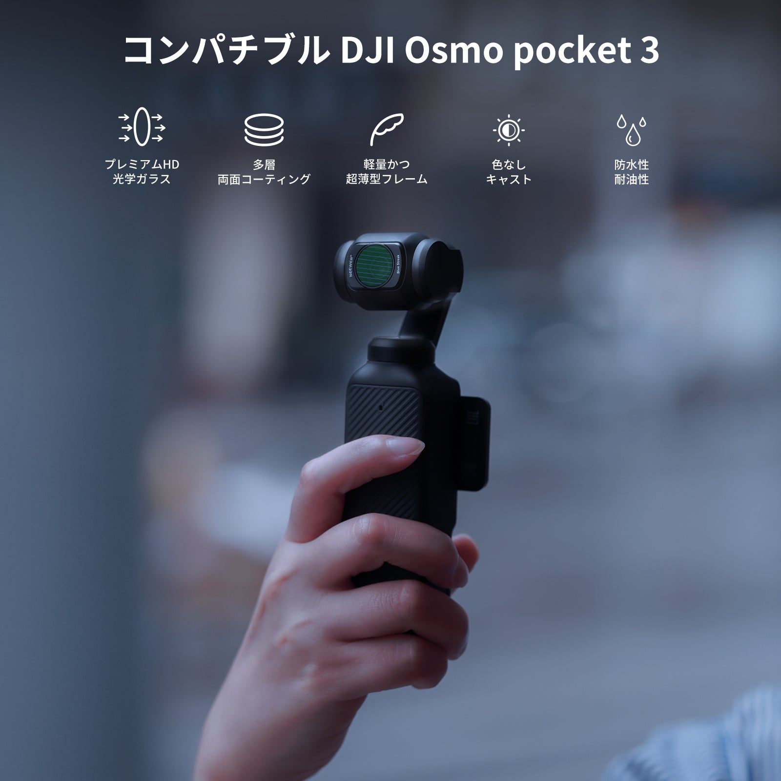 - 【OSMO Pocket 3専用】新版磁気可変NDフィルターキットはコンパチブル DJI OSMO Pocket 3、瞬時かつ安全な磁気接続が特徴です。HD 光学ガラスを備えているため、vlogカメラ撮影中に非常に鮮明なイメージングを実現でき、見事な夜景やバランスの取れた自然画像を撮影したい手持ちジンバル カメラ愛好家にとってゲームチェンジャーとなります。