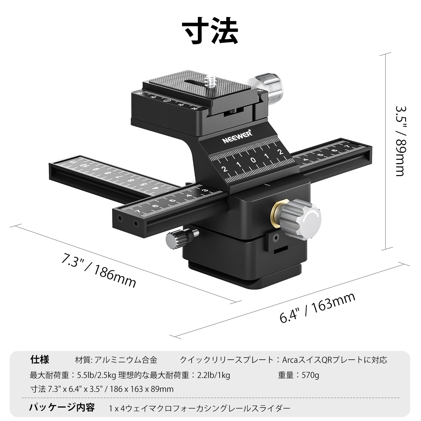 【マクロ撮影用】NEEWER 4ウェイマクロフォーカスレールは高速で正確なピント合わせのために設計されて、マクロ撮影、クローズアップ、タイムラプスビデオに適しています。特に精確なカメラ位置が重要です。