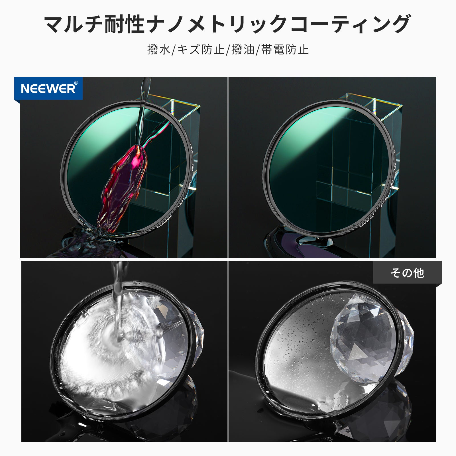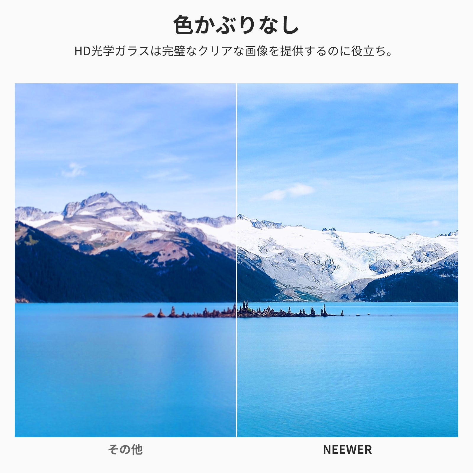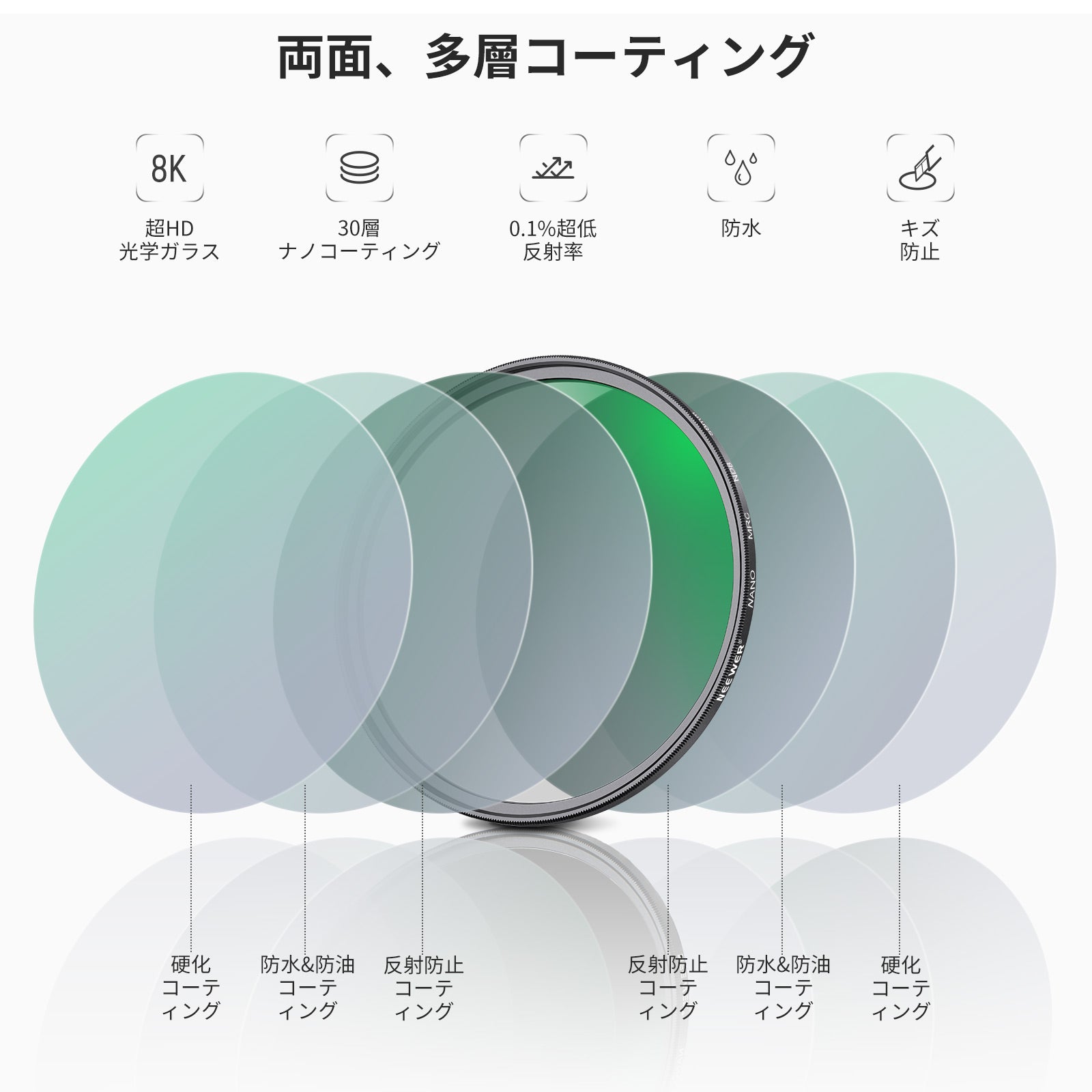 【多層の耐性ナノコーティングを施したHD光学ガラス】高品質のHD光学ガラスとフィルターの両側にある30層のナノコーティングにより、反射率は0.1%以下で、フレアとゴーストを低減します。フィルターを水、油、ホコリ、キズから守ります。