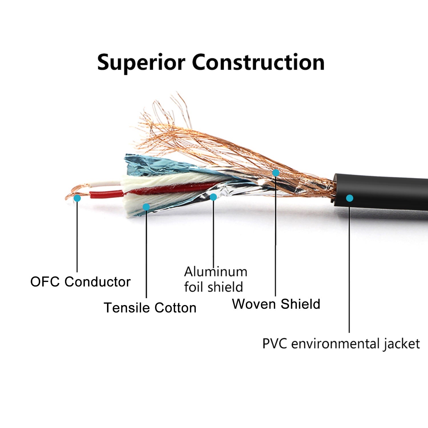 - ヘビーデューティ柔軟なゴム製のジャケット。バランス型Lo-Z端子のシールドケーブル。