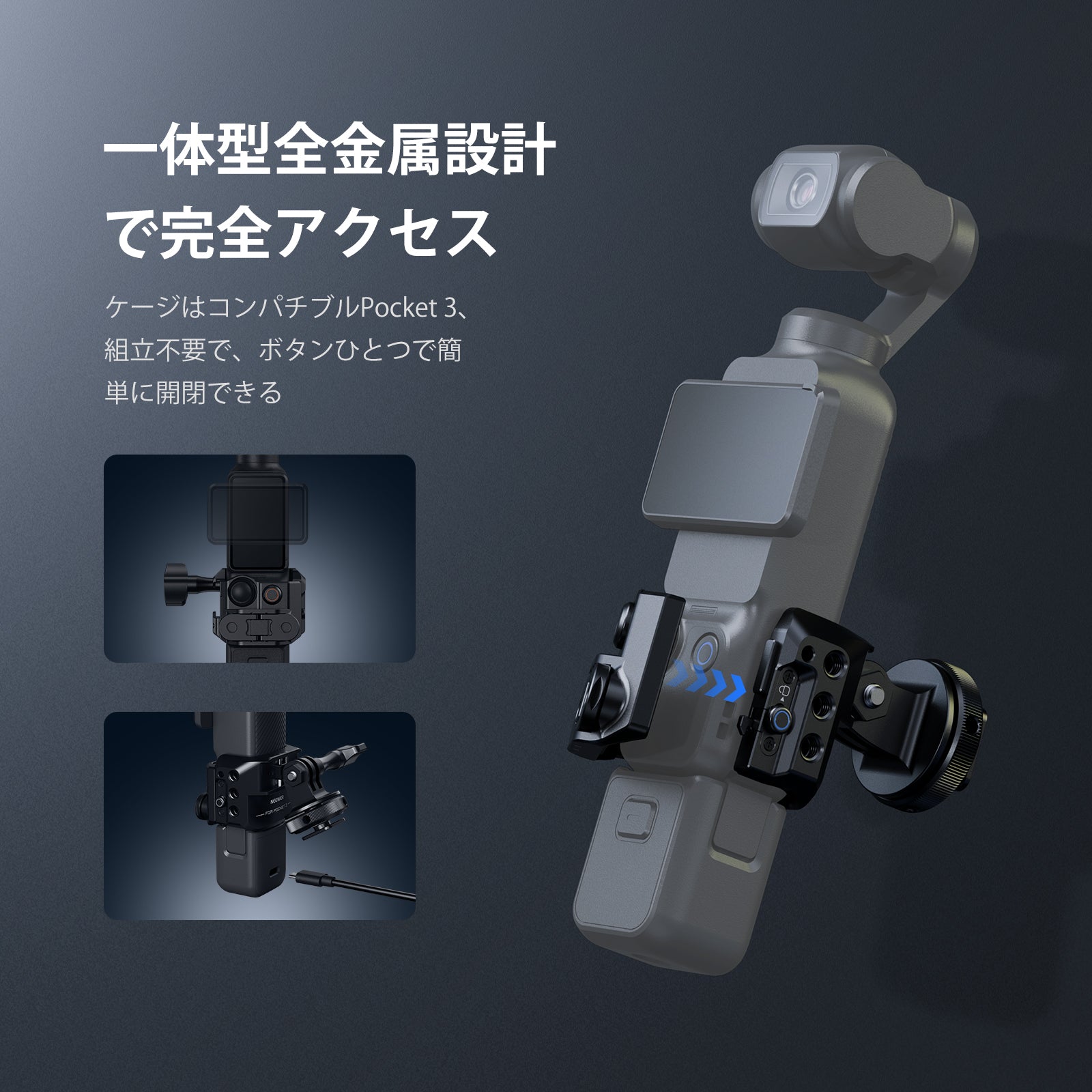 - 【一体型設計で完全アクセス】ケージはOsmo Pocket 3に作られ、組み立て不要、ボタンで簡単に開閉できます。ボタンや回転式スクリーンに完全アクセスでき、充電ポートも完全にブロックされません。