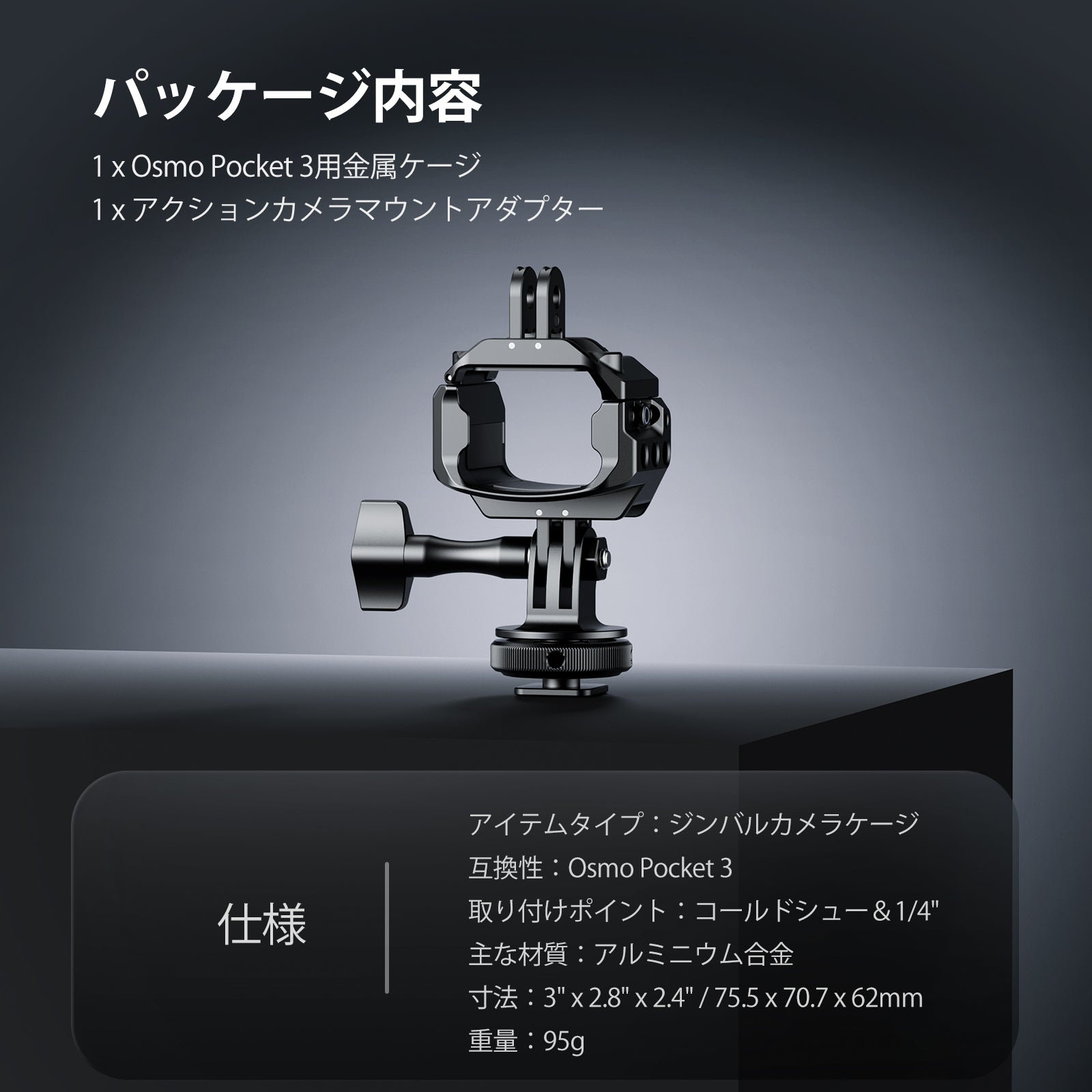 - 【Osmo Pocket 3専用】ケージはOsmo Pocket 3専用です。頑丈なアルミニウム合金ボディと衝撃吸収ゴム内装は、デバイスに完全にフィットし、日常使用時に信頼性の高い保護を提供します。注:使用前にリストストラップを取り外してください。