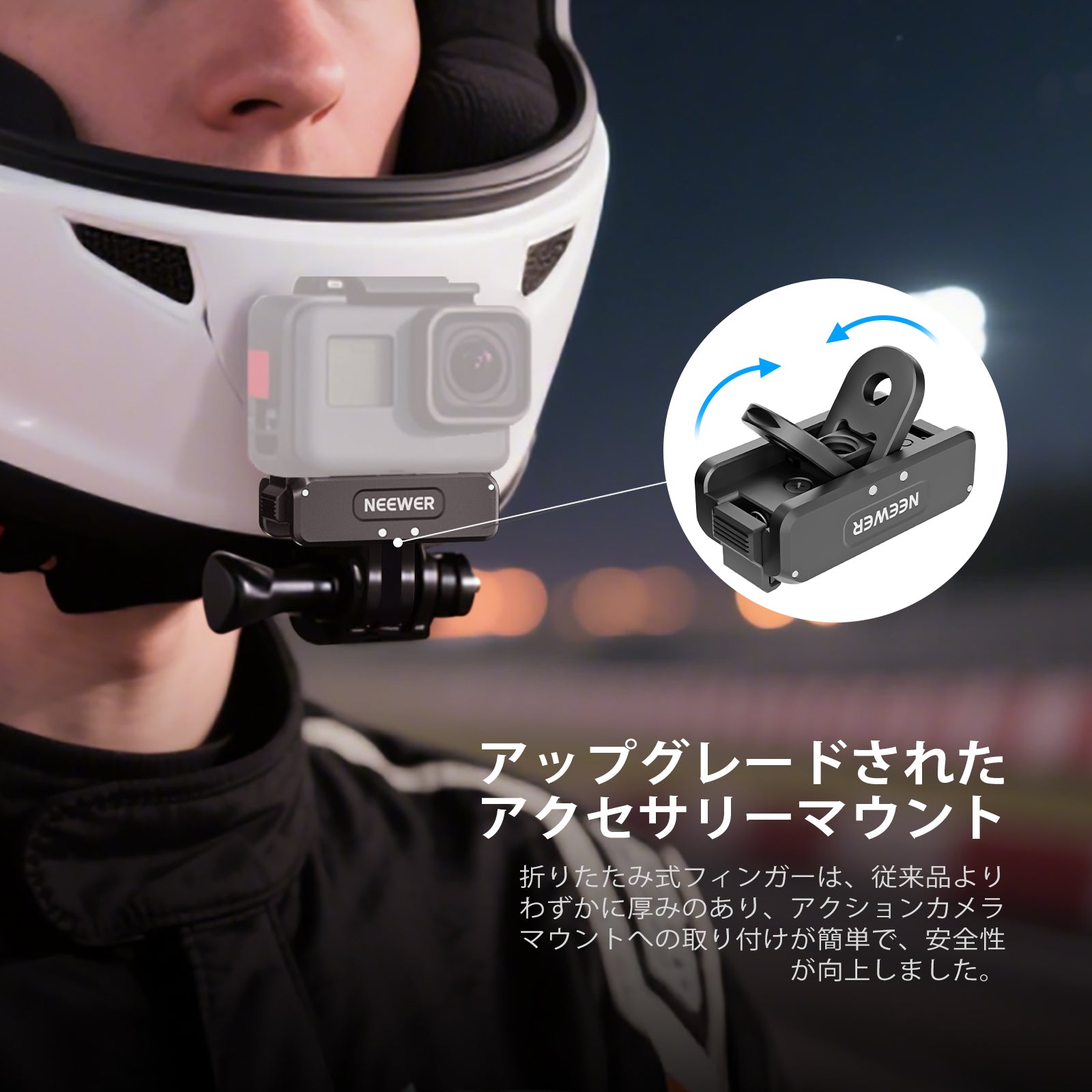 - 【アクセサリーマウントのバージョンアップ】アクションカメラマウントアダプターは、従来品よりわずかに厚みが増し、ヘルメットの顎マウント、自転車のハンドルバーマウント、チェストハーネスマウント、その他のサポートに、より簡単かつ安全にしっかりと取り付けられます。