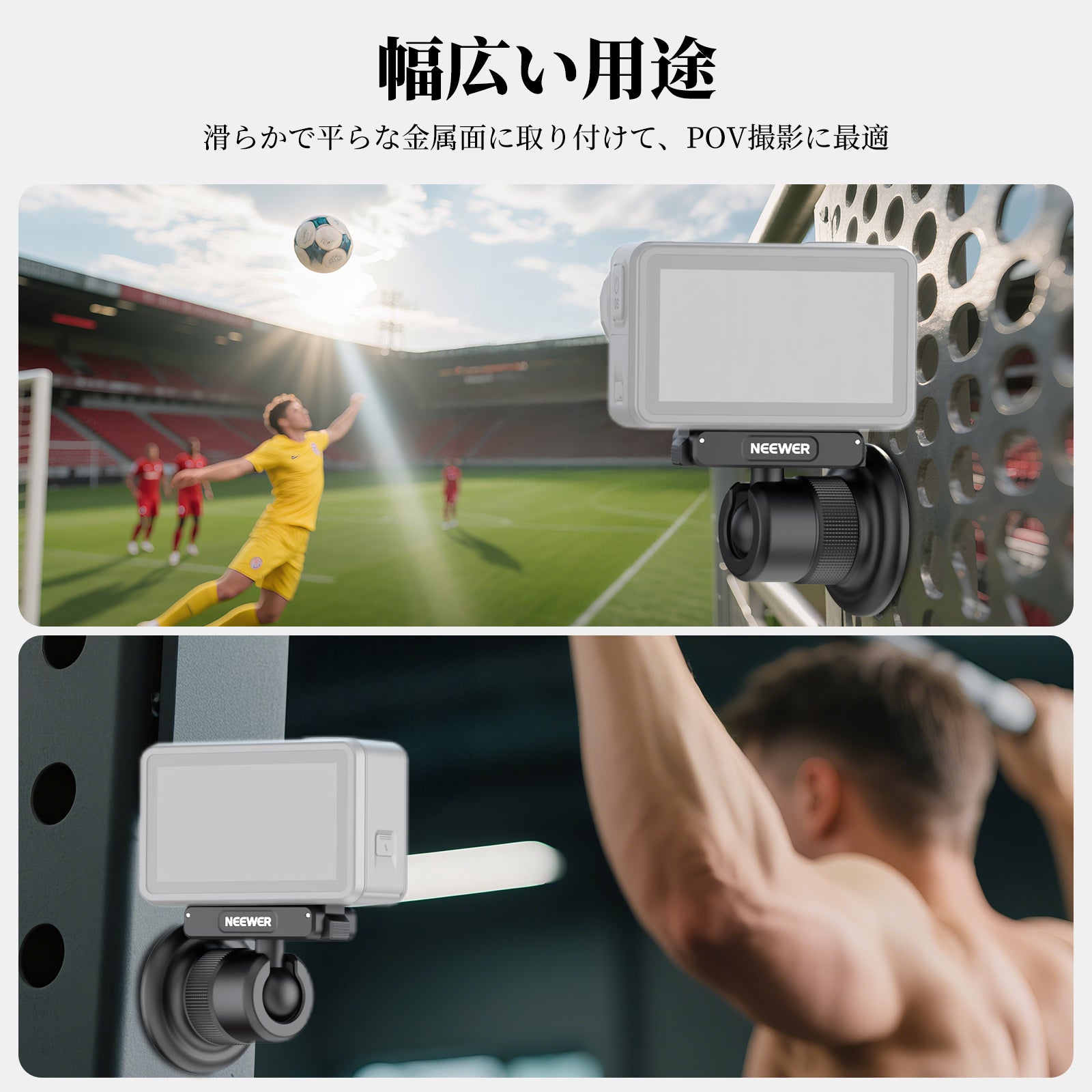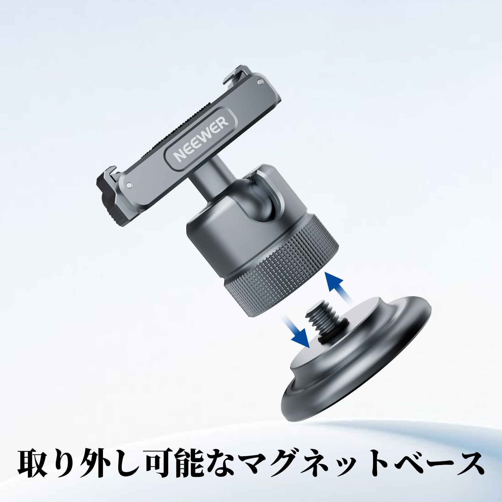 - 【取り外し可能なマグネットベース】磁気アタブターは最大荷重500gで、滑らかで平らな金属面(ドア、ポール、手すり、棚、ラックなど)に取り付けられ、ハンズフリー撮影が可能です。動いている車両(自動車、バイクなど)での使用には対応していません。