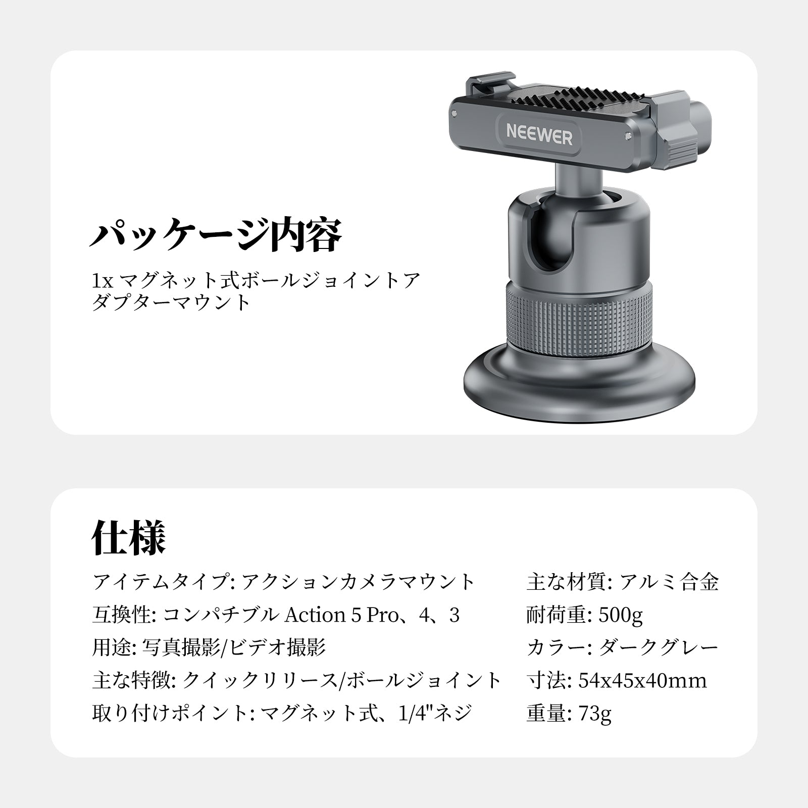 NEEWER AC013 マグネット式 カメラマウント コンパチブルDJI Osmo 360 Action 5 Pro/4/3