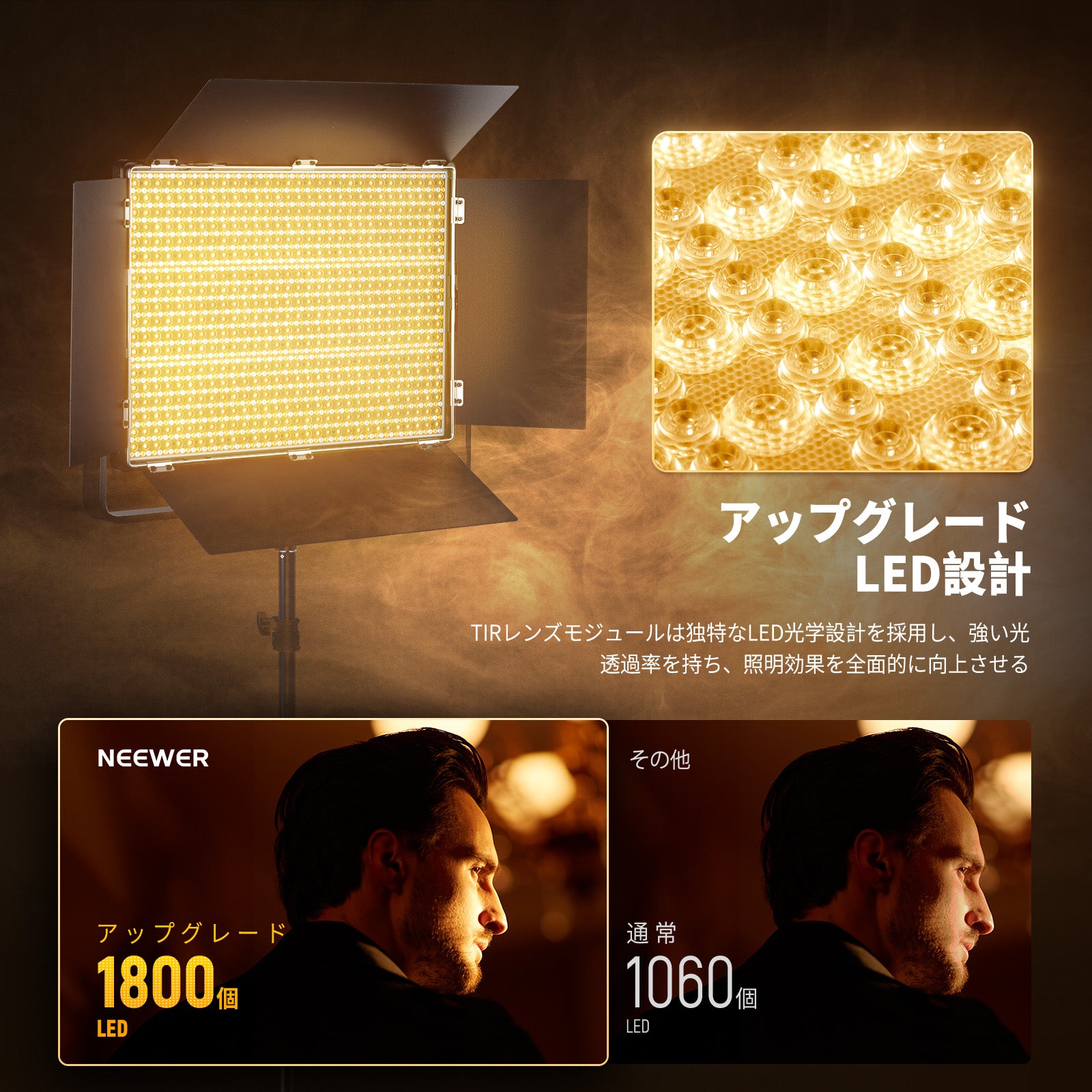 - 【360°柔軟&正確なライト制御】LEDパネルビデオライトは、U字型ブラケットを備えており、希望する照明に合わせてライトの角度を調整できます。また、取り外し可能なバーンドアが4つ装備されており、光を集中させ、照明の方向と形状を正確に制御して、あらゆる種類の創造的な取り組みを実現します。バーンドアを固定する安全ケーブルも付属し、光と人体の安全を確保します。