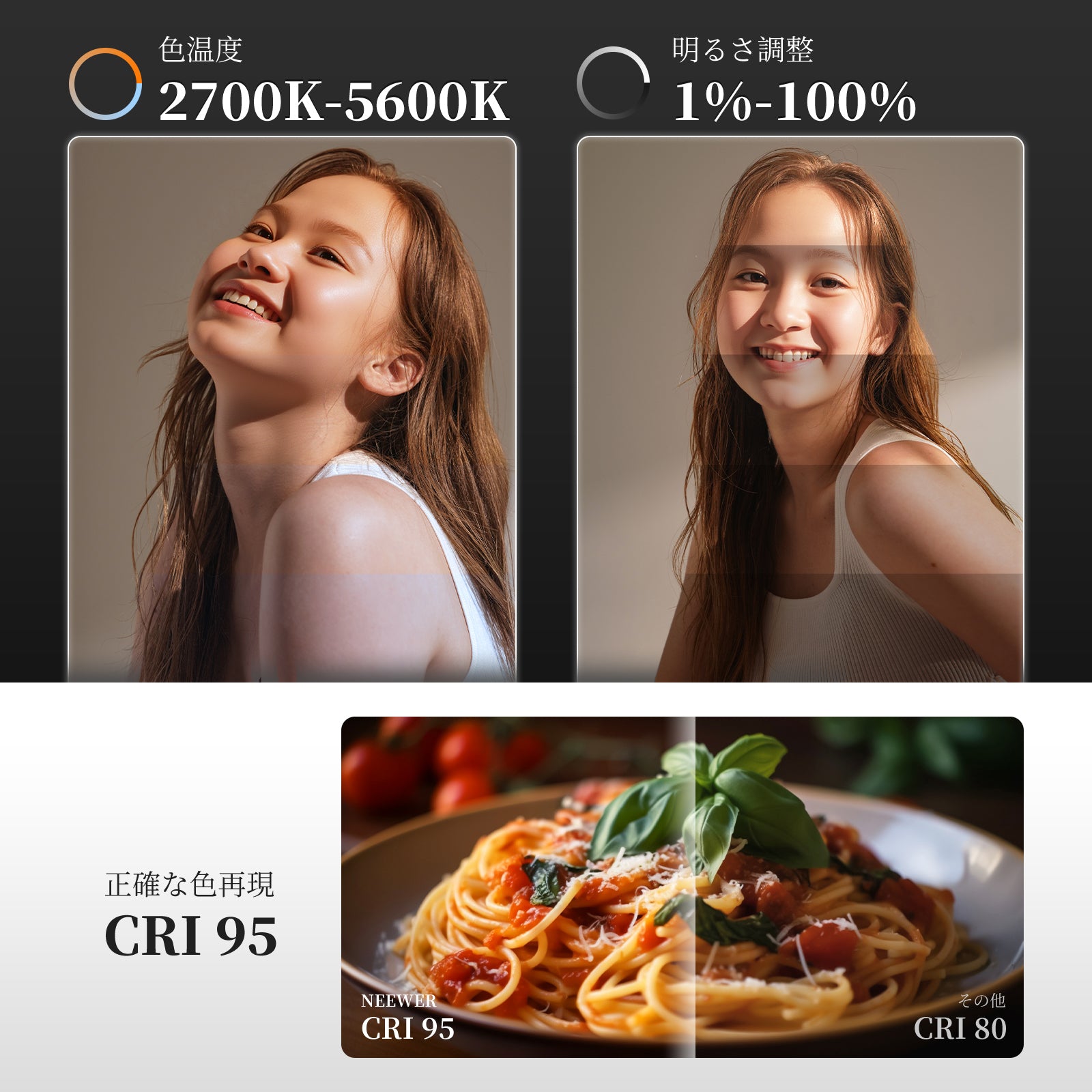- 【バイカラー調光可能&超高演色性】LEDスティックライトは120個高品質LEDを内蔵し、10W高出力で最大907Lux/0.5m照度を実現します。2700K-5600Kバイカラー温度で暖色系と寒色系を自在に切り替え、1%-100%明るさ調整も可能で、薄暗い場所から明るい場所まで、様々な照明条件に合わせて明るさを調整できます。CRI 95とTLCI 98高演色性により、色彩の正確さを保証し、被写体本来の美しさを正確に再現します。コンテンツクリエイターにとって必要なアイテムとして、インフルエンサーにとって必要なアイテムとして最適です。