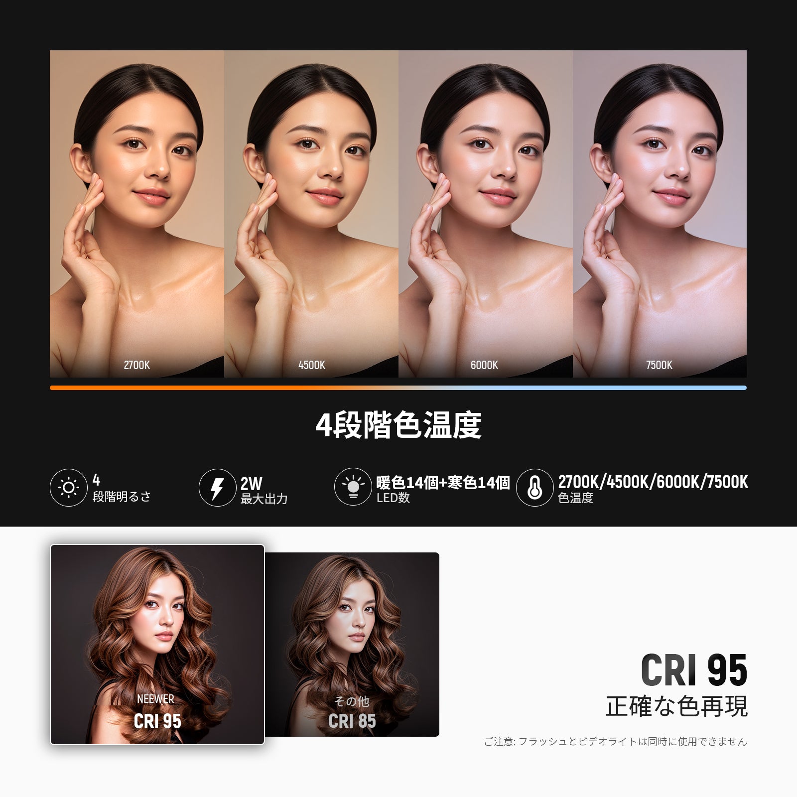 色温度: 2700K/4500K/6000K/7500K