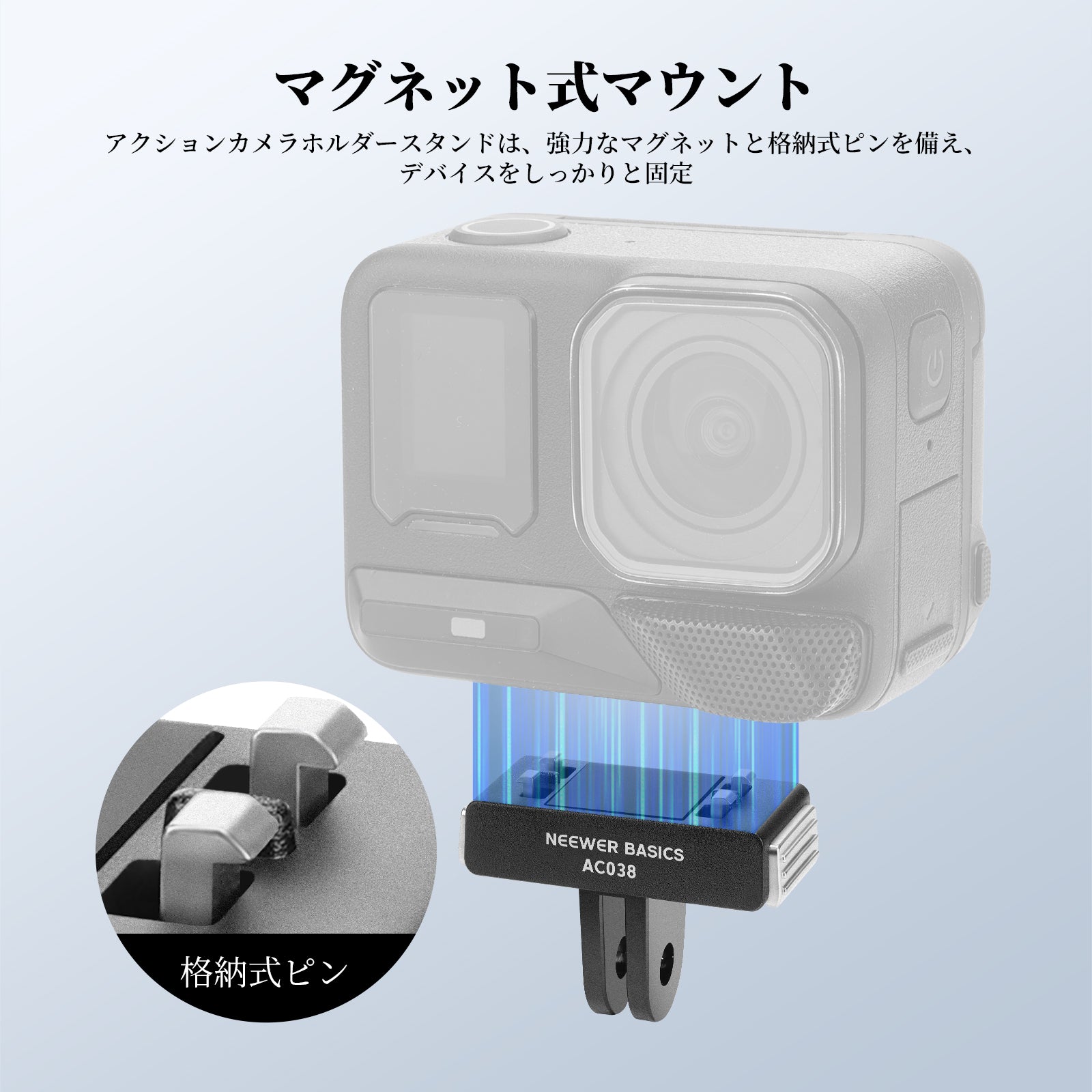 - 【マグネット式マウント】ビデオ録画用アクションカメラホルダースタンドは、強力なマグネットと格納式ピンを備え、デバイスをしっかりと固定します。クランプ&マウントアクセサリーアタッチメントキットとして最適です。