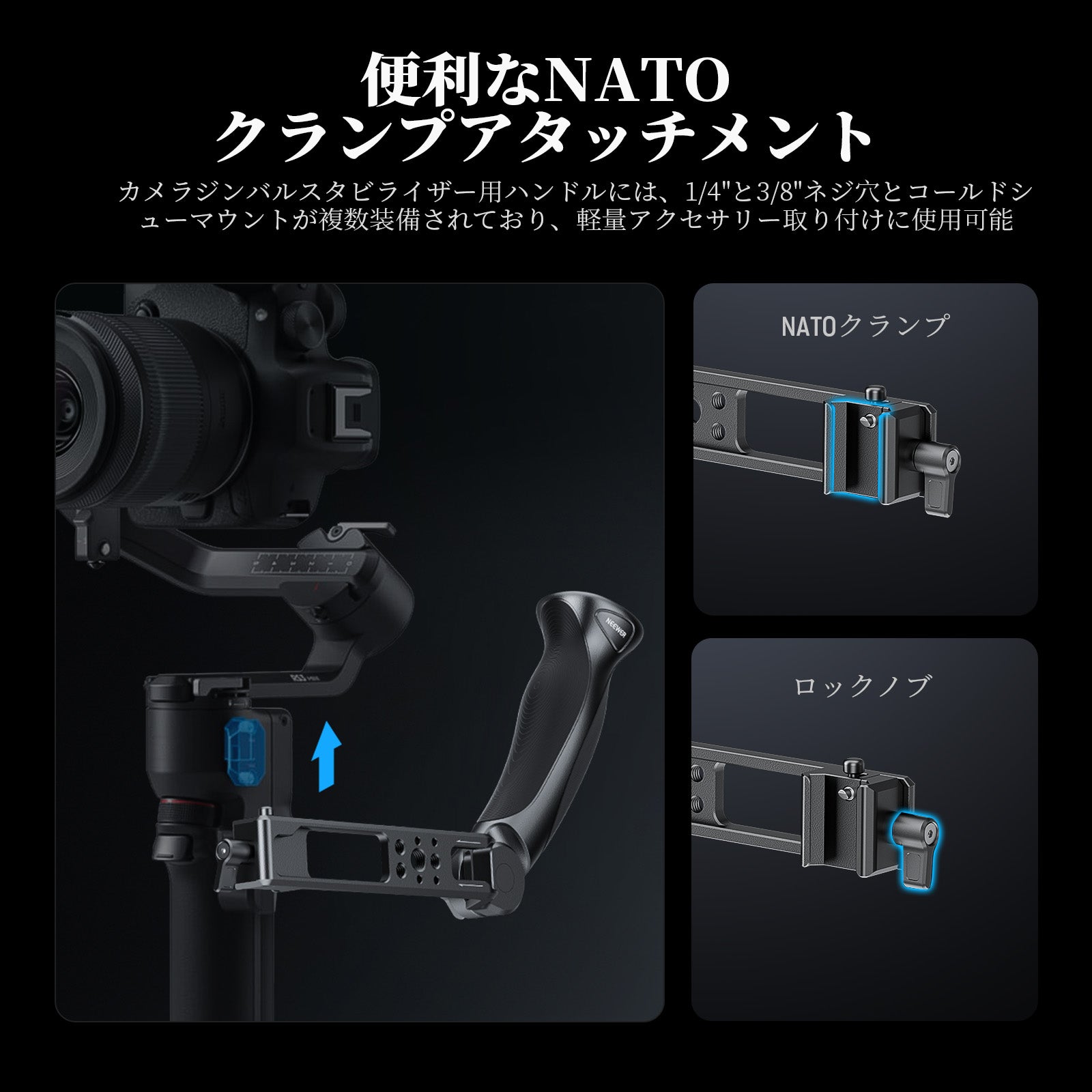 - 【Ronin RS シリーズ用スリングハンドル】スタビライザーハンドルは、コンパチブル RS4 Mini/RS4 Mini Combo/RS4 Pro/RS4/RS3 Mini/RS3 Pro/RS3/RS 2/RSC 2ジンバルスタビライザー。ハンドグリップはNATOクランプを内蔵し、ロックノブを使用してスタビライザーにしっかりと取り付けます。滑り止め表面により、汗や油のついた手でもしっかりとグリップし、誤って落とすリスクを軽減します。