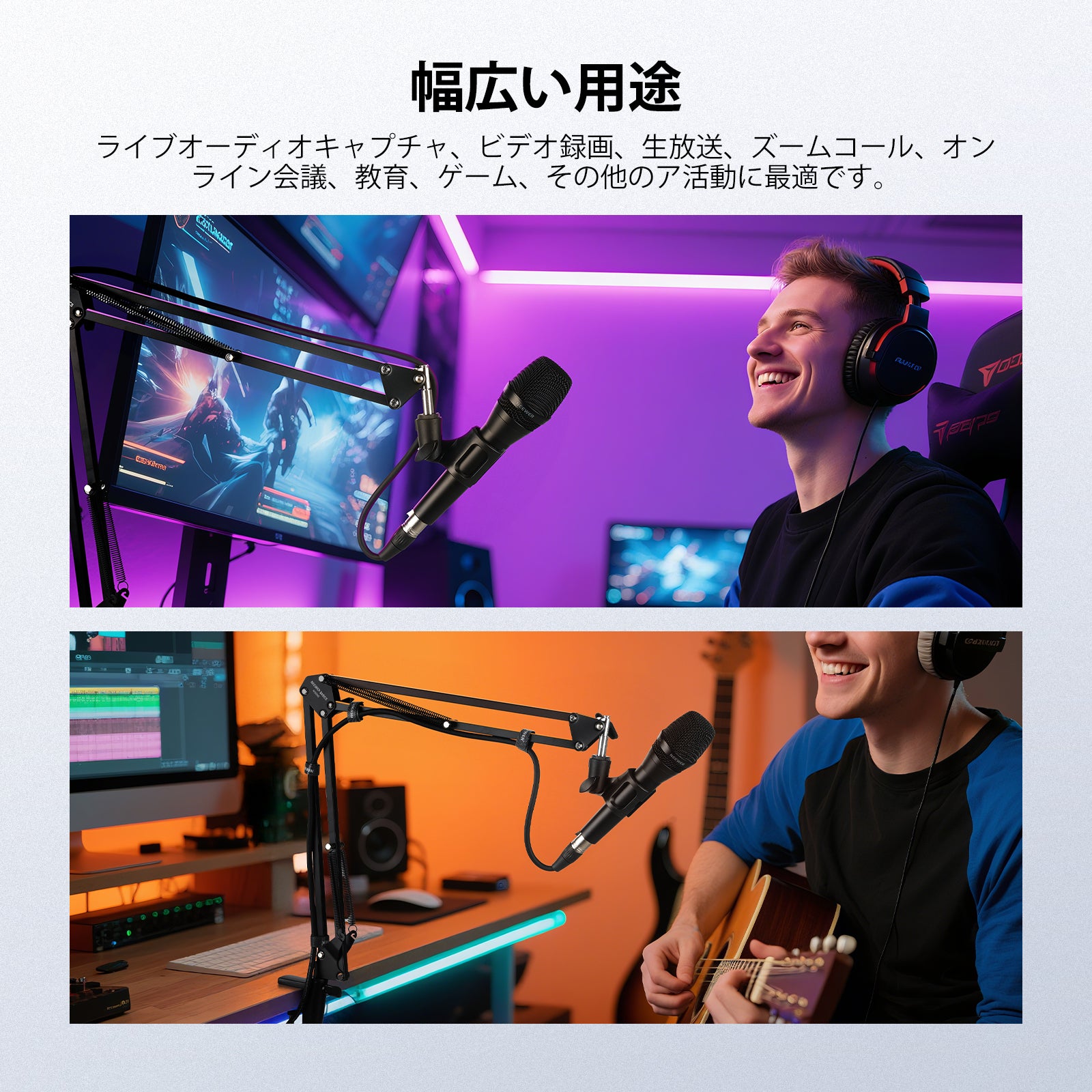 - 【マイクアーム卓上マウント】マイクスタンドは、2段式ブームアーム、卓上マウントクランプ、マイククリップを備えており、ライブオーディオキャプチャ、オンライン会議、教育、ゲーム、歌唱、ポッドキャスト設置など、マイクを簡単かつ柔軟に、静かに配置できます。折りたたみ式デザインは、高さと角度を調整し、最適な位置に配置できるだけでなく、コンパクトなので収納や持ち運びも簡単です。