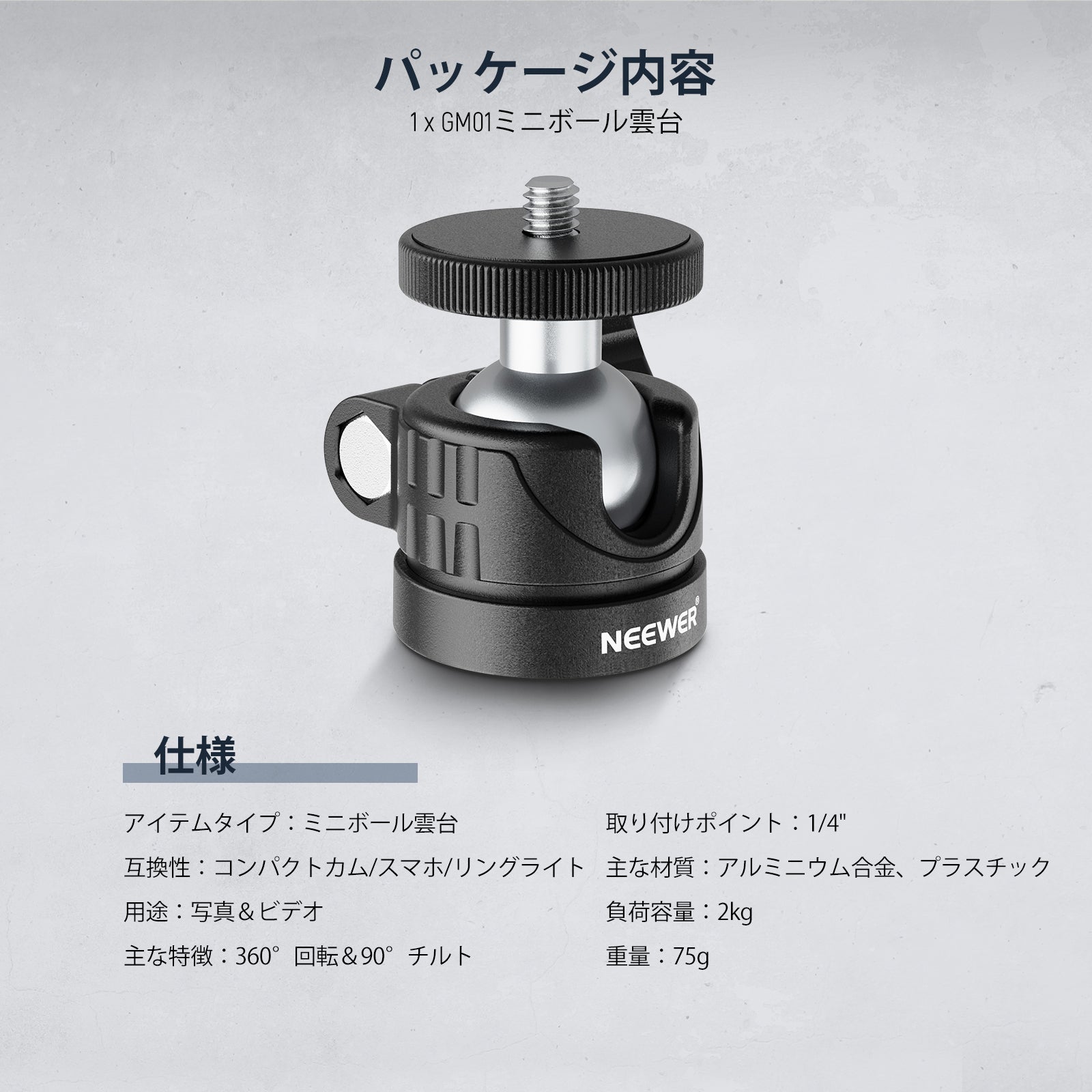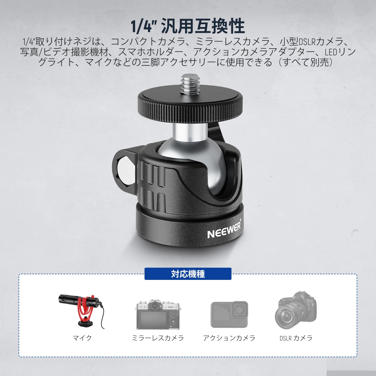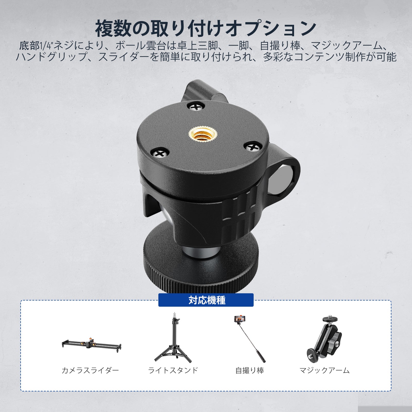 - 【複数の取り付けオプション】底部1/4"ネジにより、ボール雲台は卓上三脚、一脚、自撮り棒、マジックアーム、ハンドグリップ、スライダーを簡単に取り付けられ、多彩なコンテンツ制作が可能です。