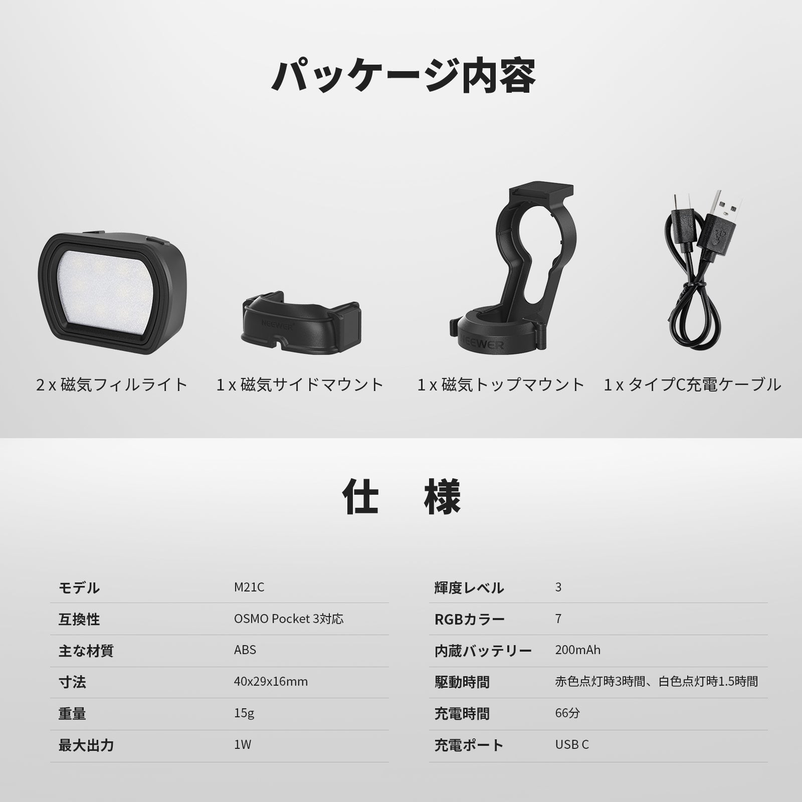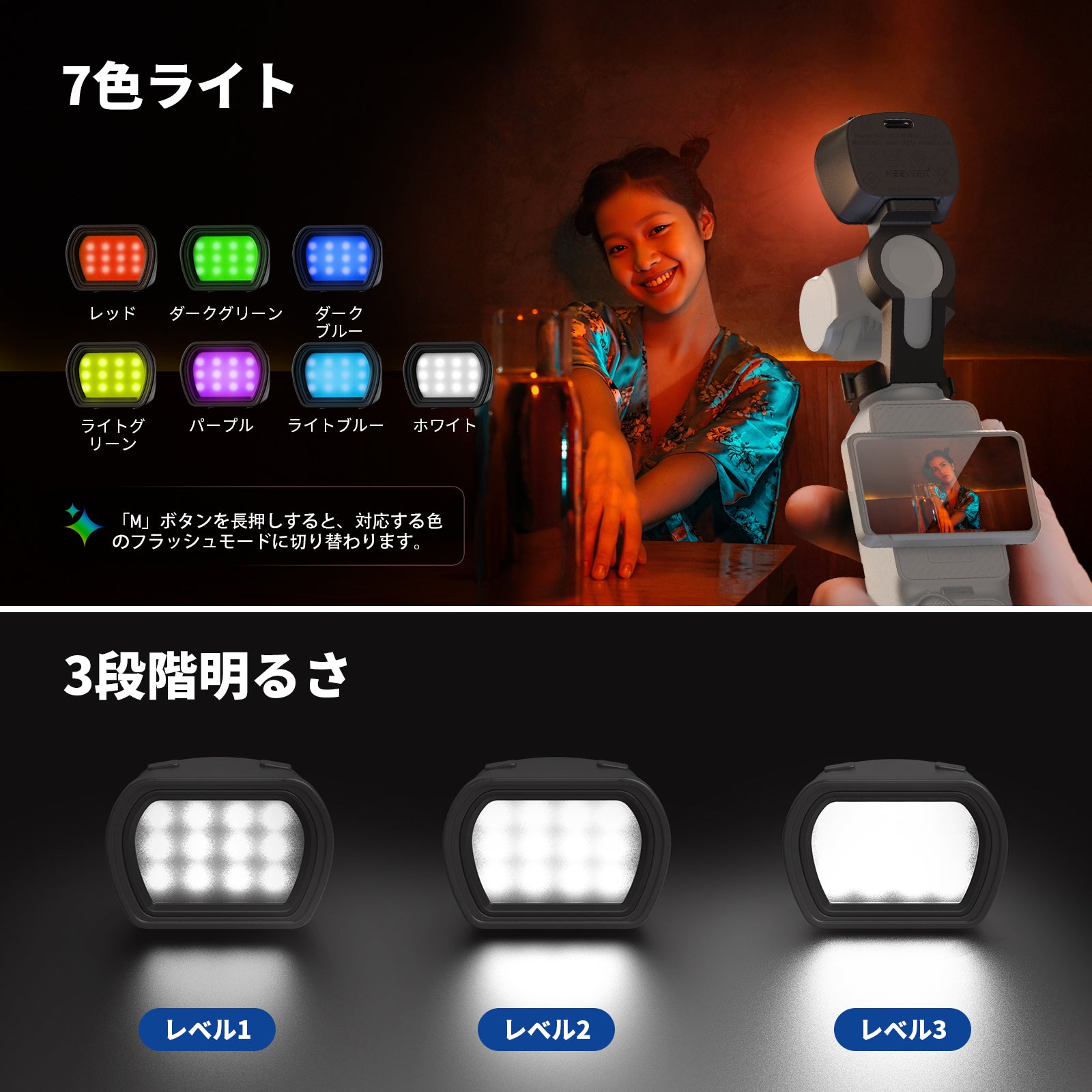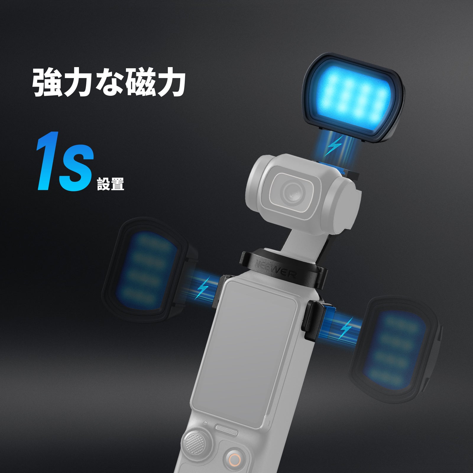 - 【強力マグネット&簡単取り付け】ミニLEDビデオライトはコンパチブル OSMO Pocket 3で、マグネット式マウントブラケットが2つ付属しており、ジンバルカメラ上部/側面に柔軟に取り付けられます。 Creator Comboアクセサリーとも連動し、ブラケットをカメラに取り付け、補助ライトをマグネットで固定するだけで、工具なしで簡単に取り付けられ、コンテンツクリエイターやインフルエンサーにとって必要な照明機器として、写真撮影やアクション満載の動画撮影に最適です。