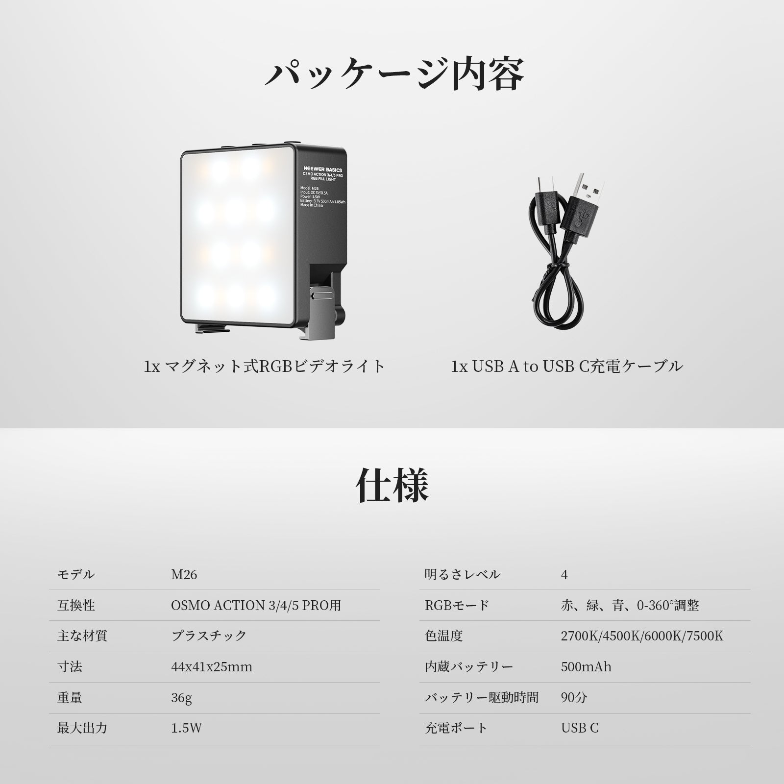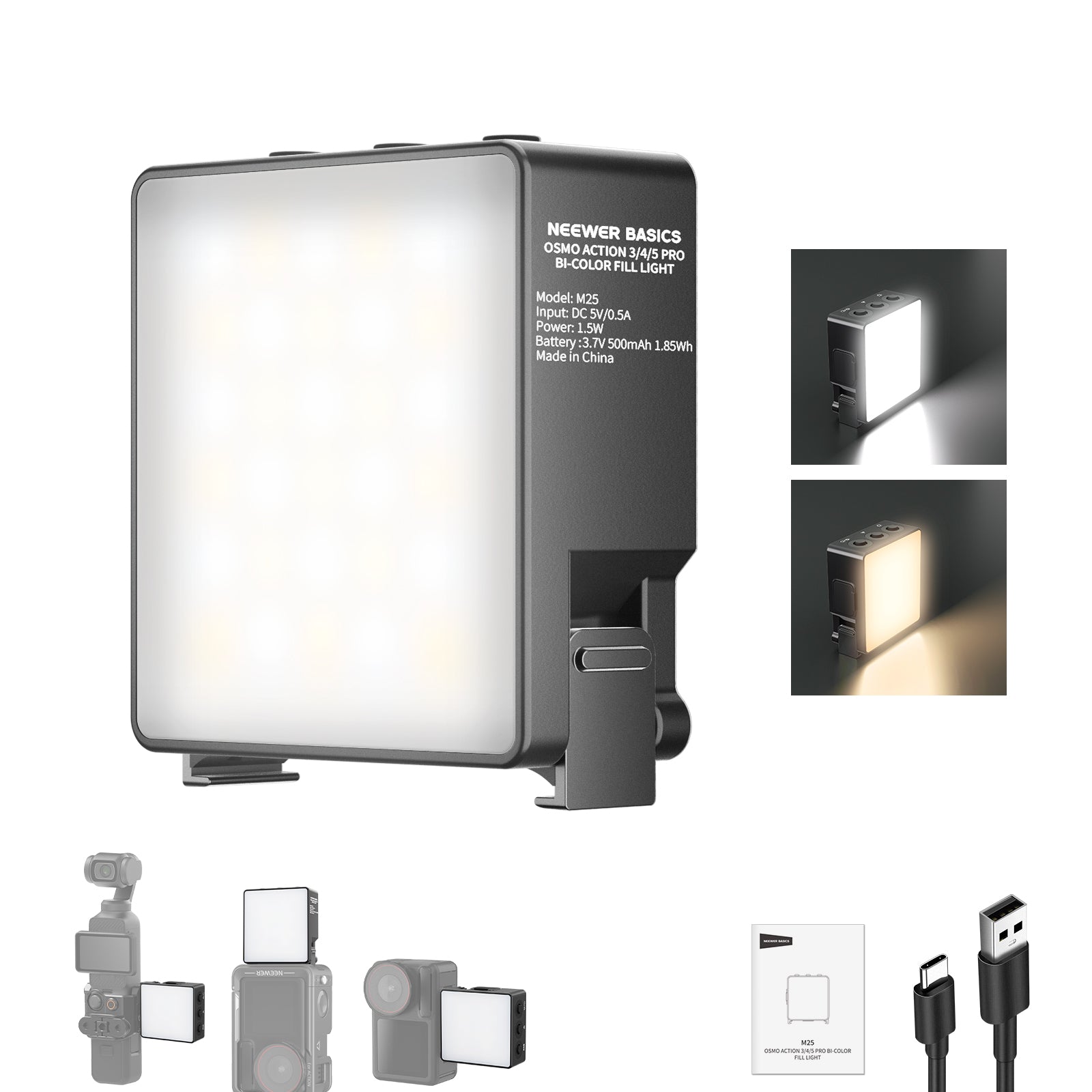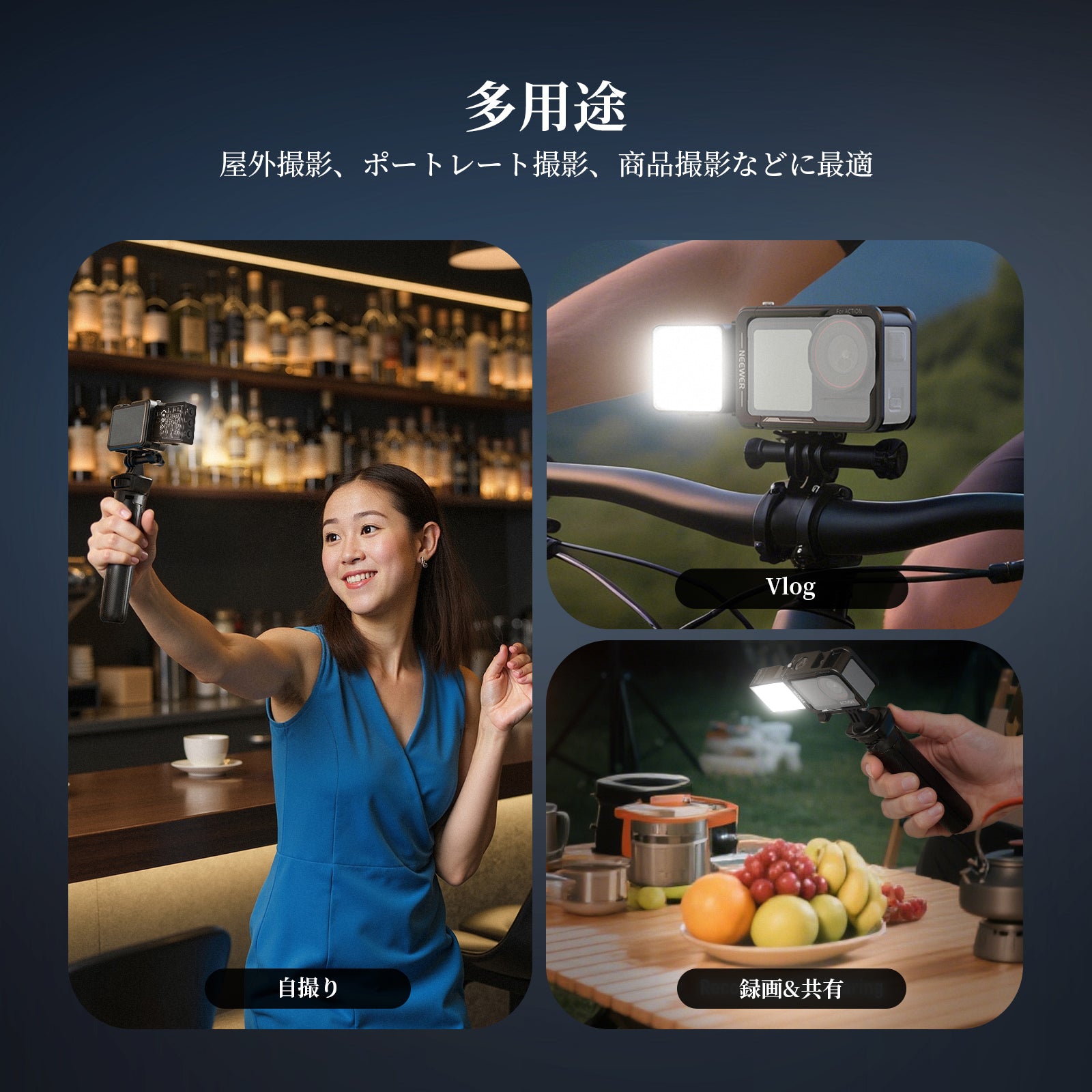 - 【4段階CCTモードと明るさ調節】 NEEWER M25アクションカメラ用ビデオライトは、OSMO Nano及びOSMO ACTION 3/4/5 PROカメラケージアクセサリーに対応。4段階の色温度モードと4段階の明るさ調節を備え、CRI95+の高演色性を実現。動画収録やライブ配信、撮影、自撮り、Vlog制作など、多彩なコンテンツ制作シーンで自然な照明効果を発揮します。