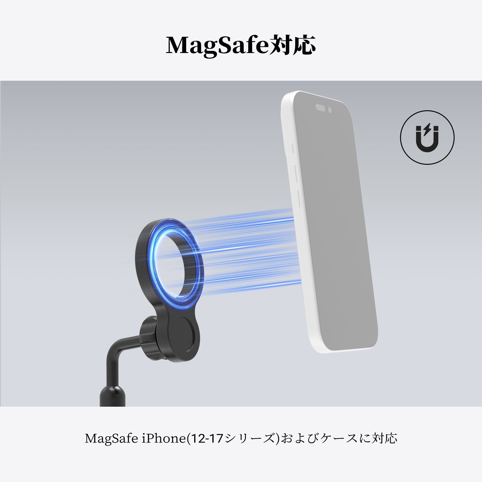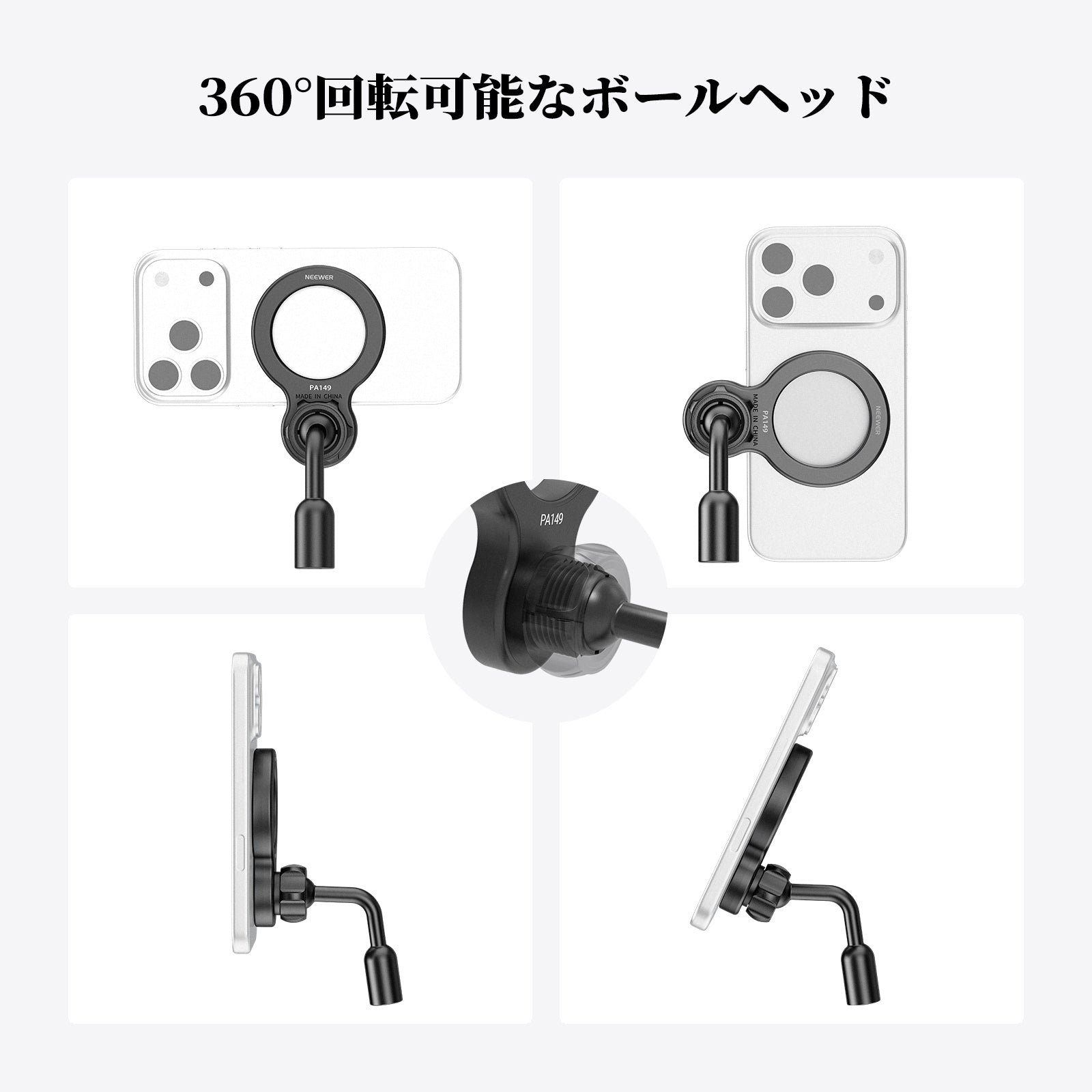 - 【360°ボールヘッドで柔軟な角度調整可能】MagSafe対応のカメラスマホマウントホルダーは360°回転し、横向きから縦向きまでシームレスに調整可能で、柔軟で安定した撮影や動画撮影が可能です。