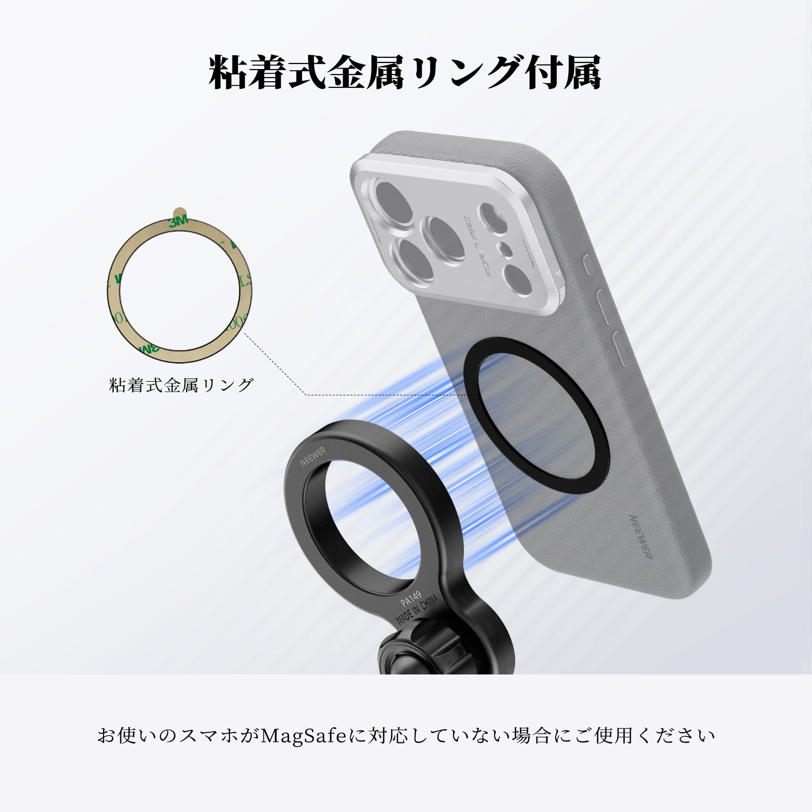 - 【マグネット式アタッチメント】カメラ撮影用スマホマウントは、iPhone 17、16、15、Pro Max Plus、14、13、12のMagSafeケース/カバーアクセサリーに対応しています。マグネットリングにより、Galaxy S25、S24 Ultra、Google Pixel 10、9 Proにも対応しています。