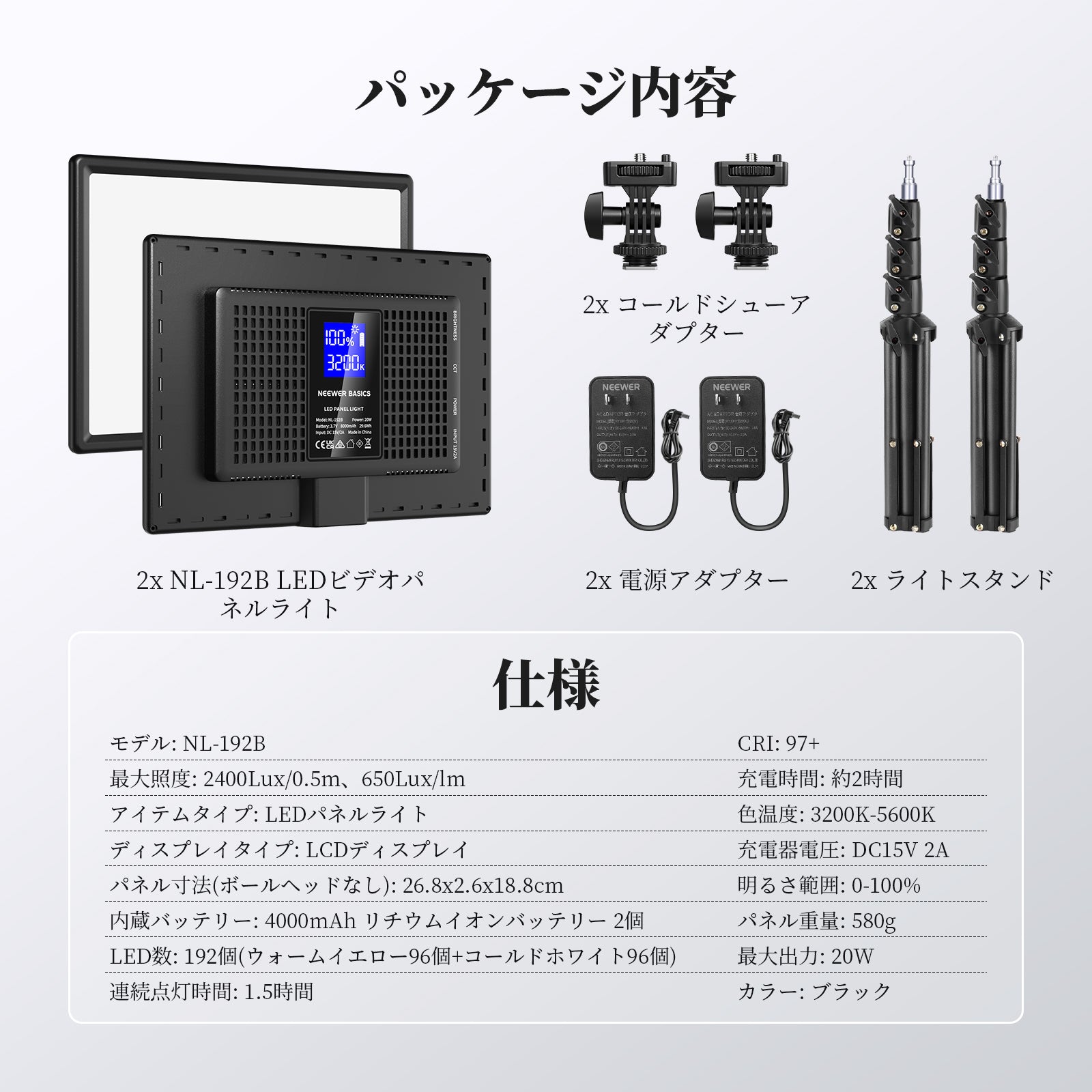 NEEWER BASICS NL-192B 2パック 二色LEDビデオライトパネルキット