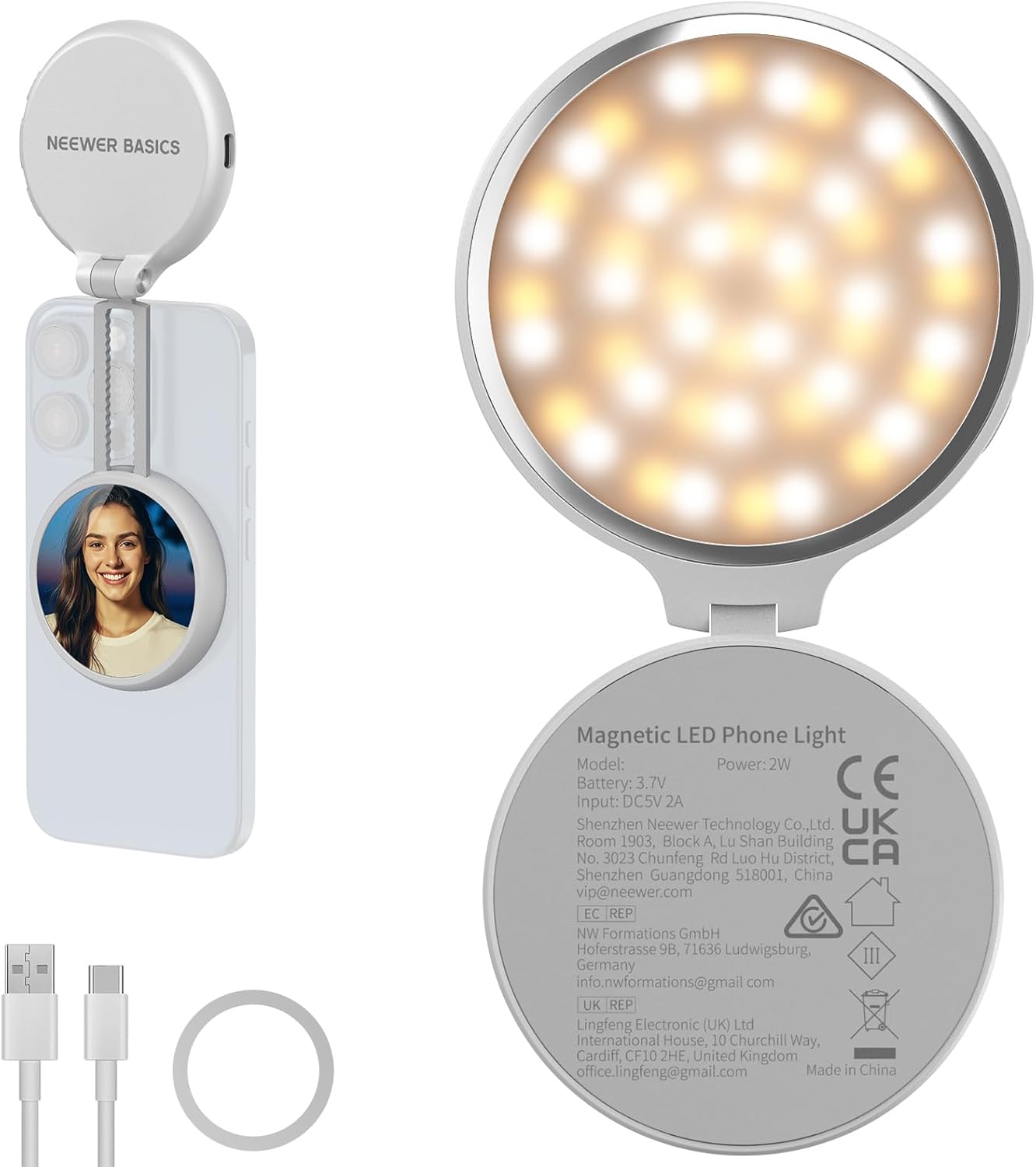 - 【マグネット式クイックアタッチメント&角度調整可能】ミニ自撮りライトは強力な磁力を備え、コンパチブル MagSafe iPhone 16 Pro Max Plus、15/14/13/12、Mini MacBook Air。非磁性デバイスの場合は、付属の粘着式磁気リングをAndroid、ノートパソコンに取り付けられ、簡単にセットアップでき、コンパチブル iPad Pro、Galaxy S25 S24 S23 Ultraなど。ビデオライトは写真撮影用アクセサリーとして使用し、上下の傾斜と高さの伸縮にサポートし、お好みの照明角度に柔軟に調整します。