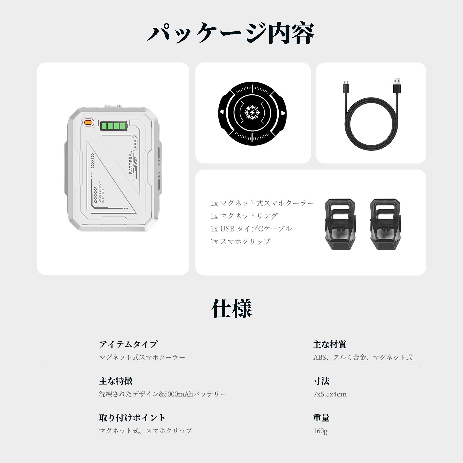 - 【マグネット式アタッチメント&クリップ付き】スマホ扇風機はモバイルゲームアクセサリーとして使用し、コンパチブル MagSafe iPhone 16、15、Pro Max、Plus、14、13、12、Miniスマホケース。スマホは磁気充電非対応した場合、付属したマグネットリングを取り付けられ、クリップで小型ファンを固定してから冷却してください。コンパチブル iPhone、iPad、Galaxy S24、S23 Ultra、Pixel 9、8、7 Proなどで、付属したスマホクランプマウントを使用してクーラーをスマホに固定し、効率的に冷却することもできます。
