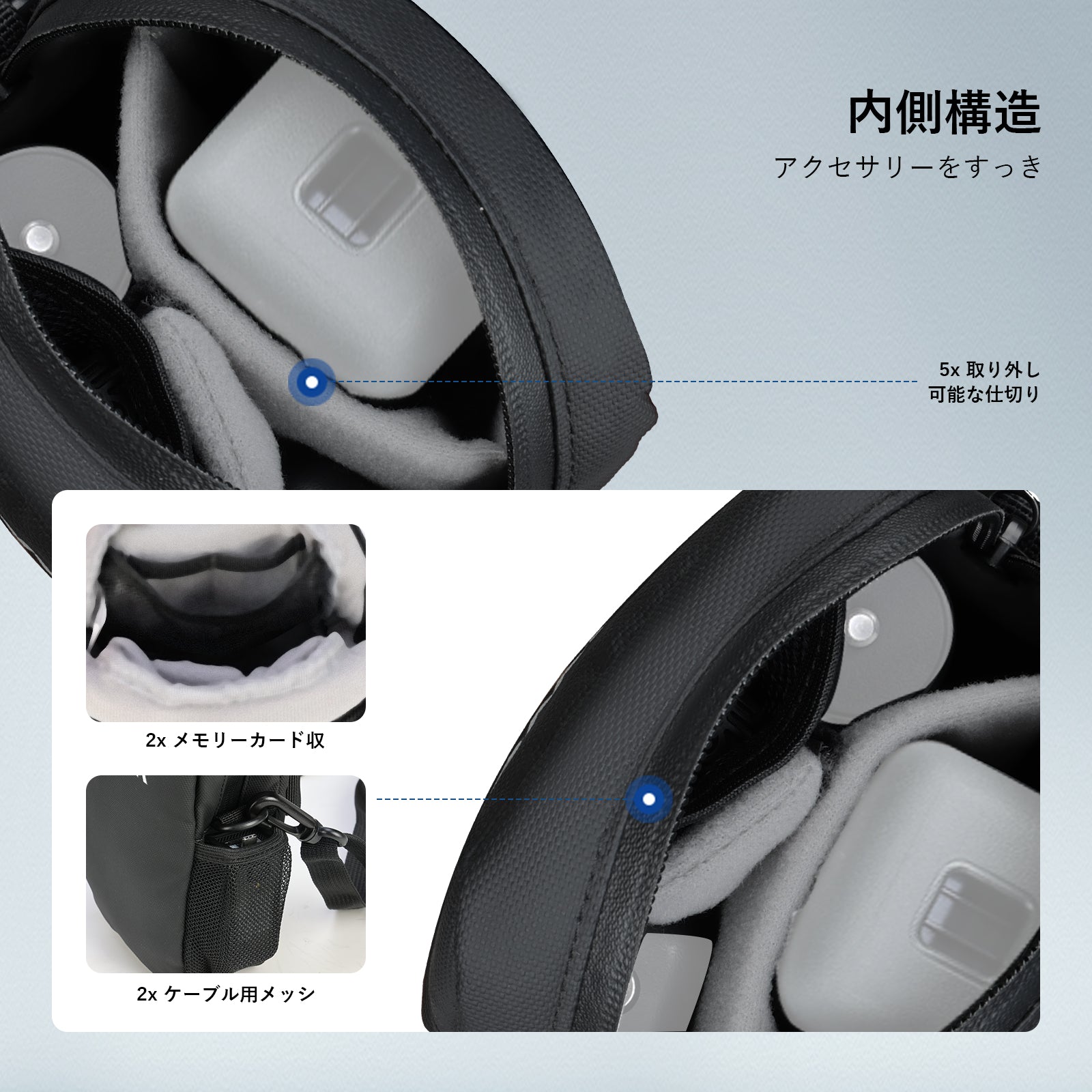 - 【クロスボディ&ショルダーベアリング】カメラバッグは、ショルダーバッグ、クロスボディ、チェストパックなど、様々な持ち方が可能です。内蔵ループを使用してフォトグラフィー用バックパックに取り付けたり、ループとフック留め具を使用してバックパックのショルダーストラップに固定したりすることも可能です。コンテンツクリエイターやインフルエンサーにとって必要なカメラギアです。