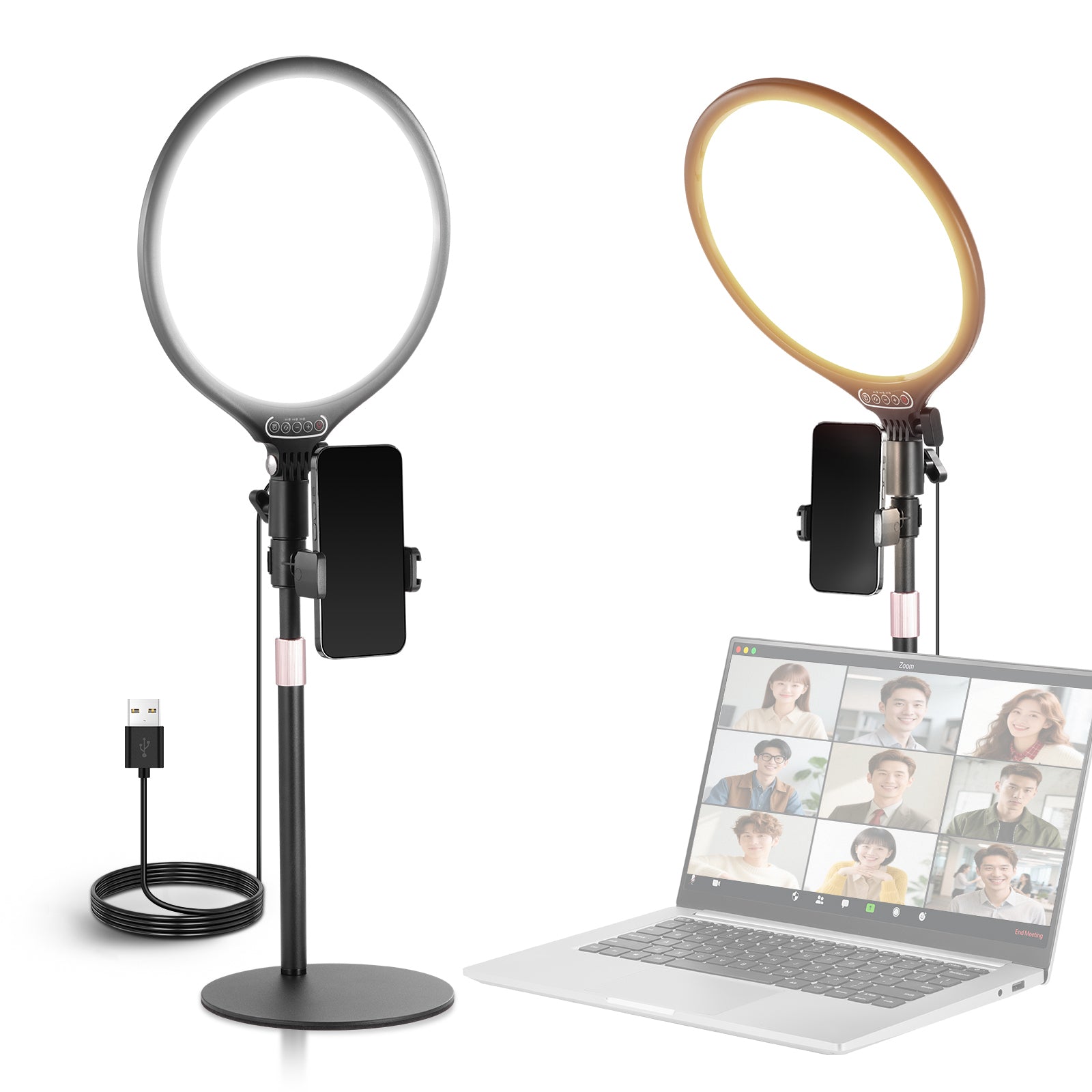 - 【スマホホルダー付き&USB給電】Vlog用卓上リングライトはスマホホルダーを備え、コンパチブル iPhone 16/15 Pro Max/Plus/S24 Ultraで、360°回転可能なので、カメラの縦向きと横向きを楽に調整し、ビデオ撮影、ビデオ録画、Vlogging、映像制作に最適です。コンパクトデザインを採用され、USB給電をサポートし、屋外ロケにも持ち運びにも便利です。