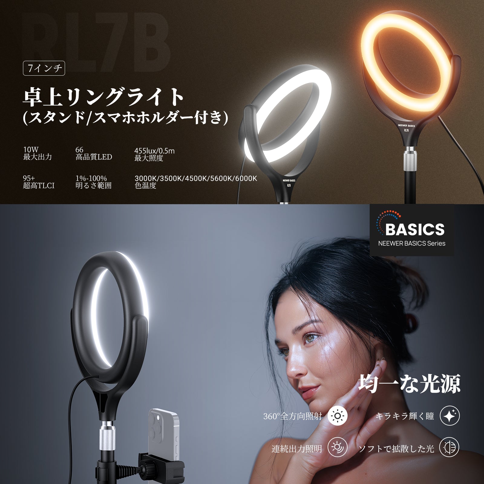 NEEWER BASICS RL7B 7" 10W卓上リングライト