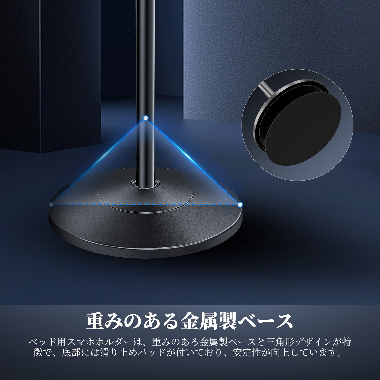 - 【重みのある金属製ベース】ベッド用横向きスマホホルダーは、重みのある金属製ベースと三角形デザインを採用し、底面には滑り止めパッドが付いており、安定性が向上しています。コンテンツクリエイターにとって必要なジンバルアクションカメラギアや、インフルエンサーにとって必要な撮影アクセサリーとして最適です。
