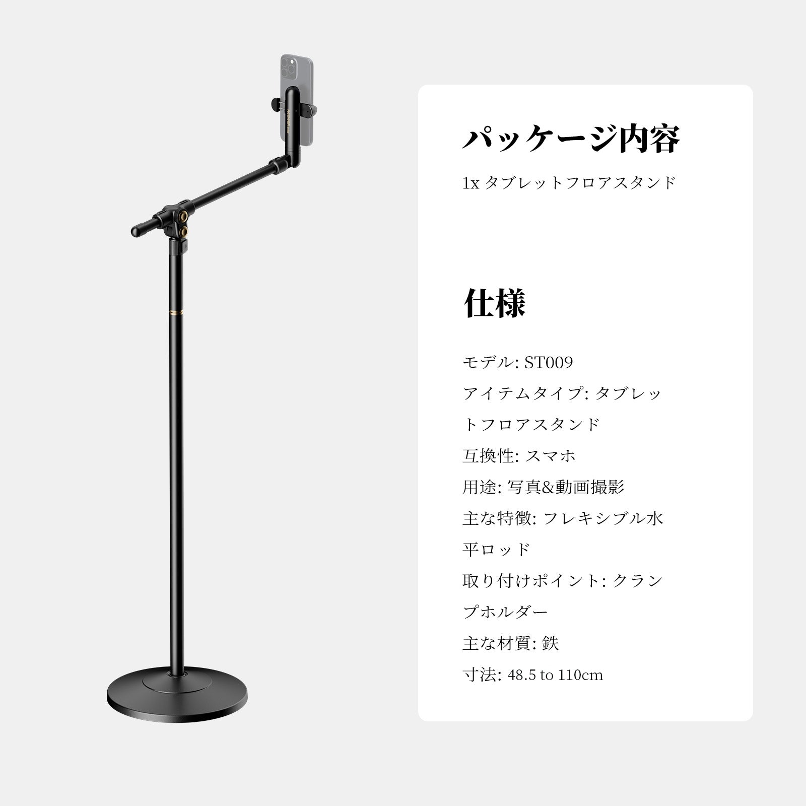 - 【多用途】スマホフロアスタンドは、高さを48.5cm-80cm調整可能で、水平延長ポールも付属しており、横になったり、座ったり、立ったりと、様々な姿勢で使用できます。長時間使用でもスマホをあらゆる角度に楽に調整でき、快適に視聴体験を得られ、読書、動画鑑賞、自撮り、生放送、ビデオコール、ゲームなどに最適です。