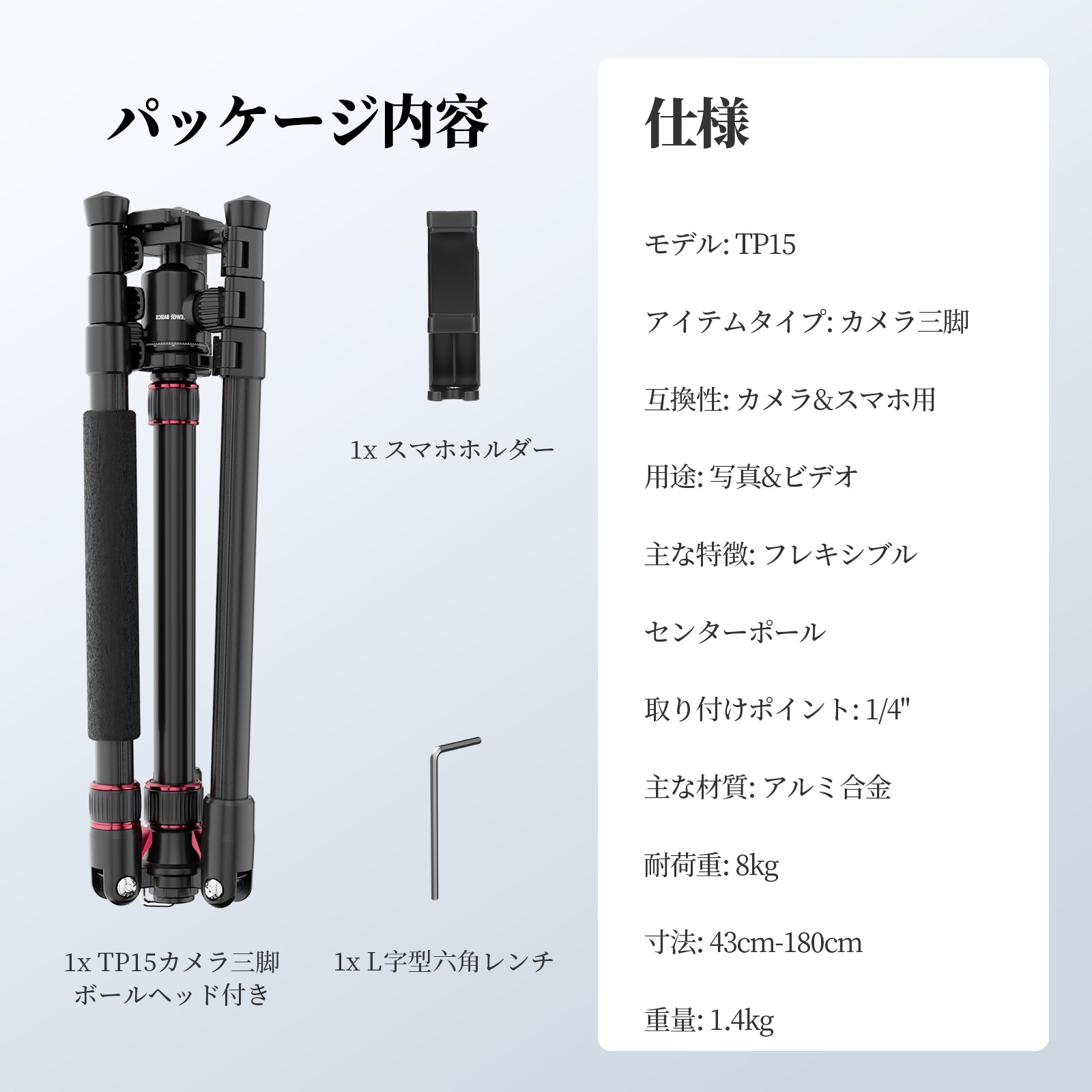 1x TP15 カメラ三脚(ボールヘッド付き)
