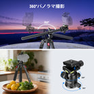 - 【多角度調整&クイックリリース】センターポールはロックノブで180°チルト、360°回転で、水平、垂直、斜め位置を素早く切り替えられ、様々な撮影ニーズに対応し、プロ仕様カメラ三脚は、反転させることもでき、ローアングルやマクロ撮影できます。360°ボールヘッドは、アルカ規格クイックリリースプレートが付属し、素早い着脱を可能にします。