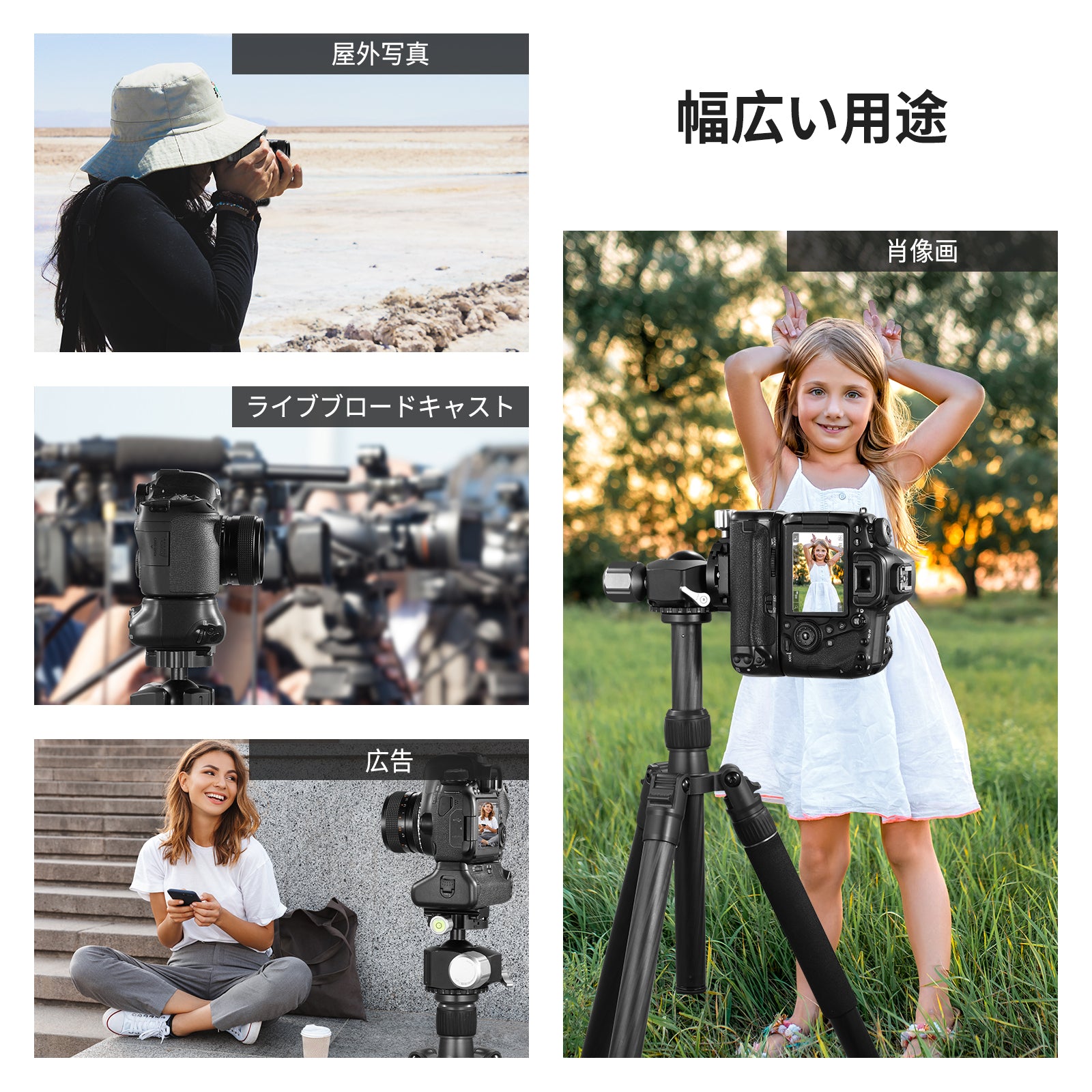【簡単に垂直撮影を実現】グリップは、カメラを垂直に保持する際の安定性を高めます。特に重い望遠レンズを使用している場合は、片手でカメラを水平位置から垂直撮影に切り替えることができます。水平位置で撮影する場合は、底面の1/4"のネジ穴から三脚や写真スタンドにグリップを取り付けることができます。