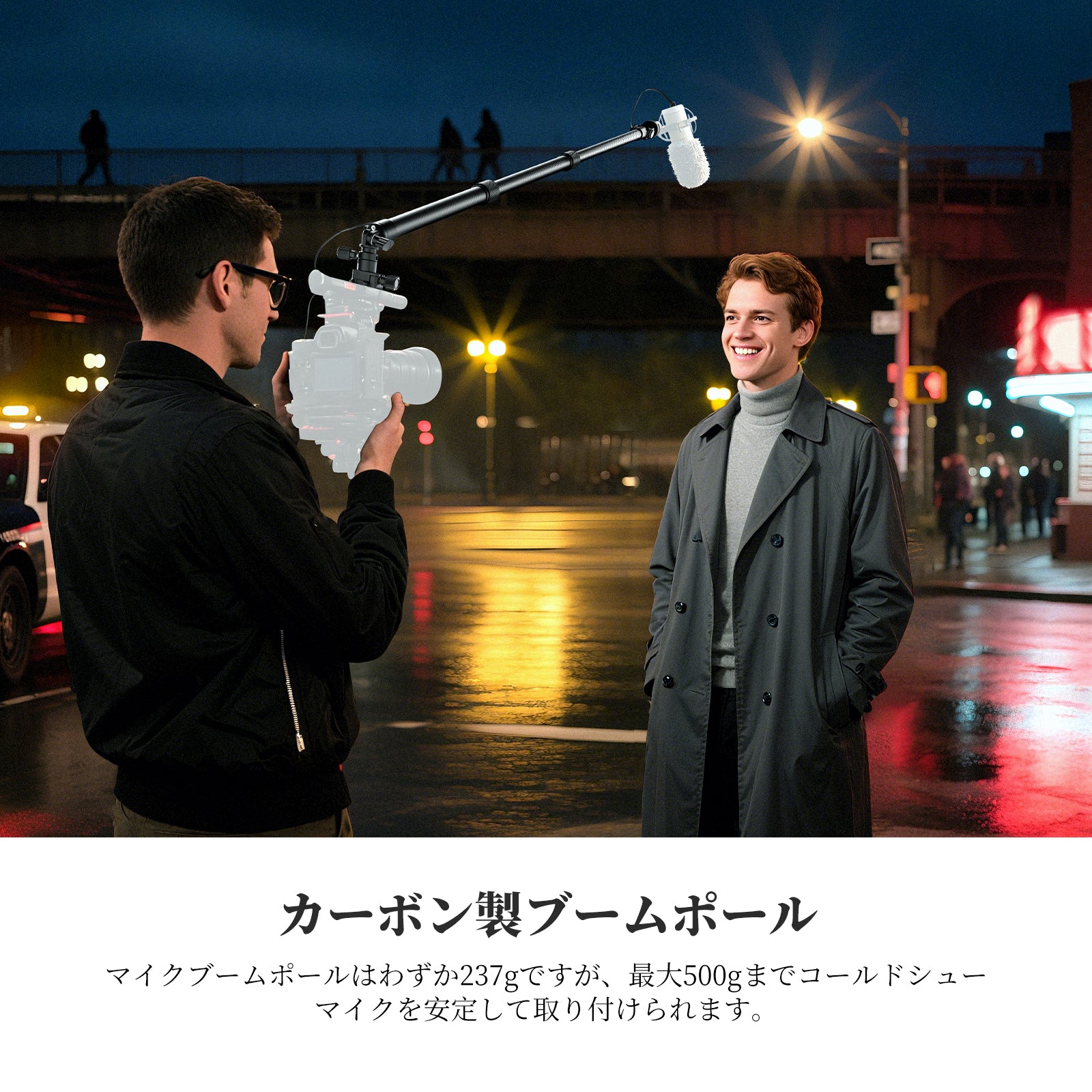 - 【カーボン製ブームポール】マイクブームポールはカーボンで作られ、軽量ながらも頑丈で、わずか237gという軽さであり、最大500gまでコールドシューマイクを安定して取り付けられます。NATOクランプはカメラケージに素早くしっかりと固定し、マイクをフレームから遠ざけ、インタビュー、映画制作、Vlog撮影など、一人で行う撮影に最適です。