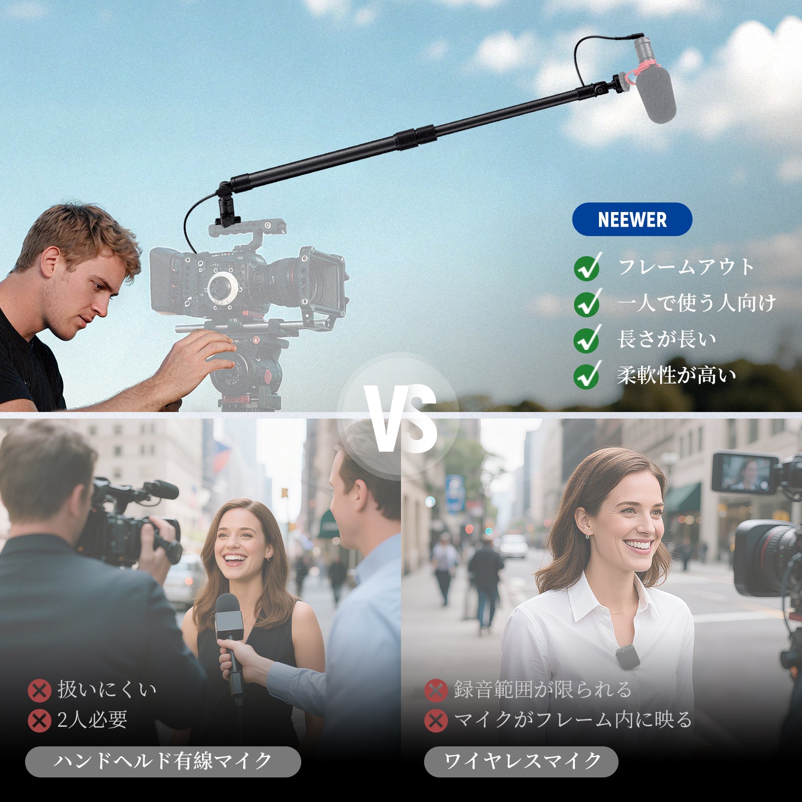 NEEWER BP01 カーボン製 マイクブームポール